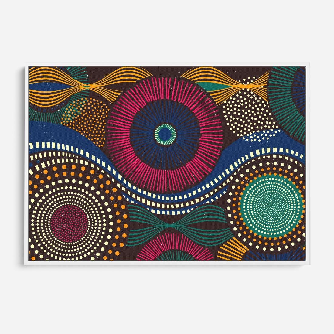 Obraz w ramie 120x80 - Energia Wzorców - enticzne wzory, kształty - rama biała