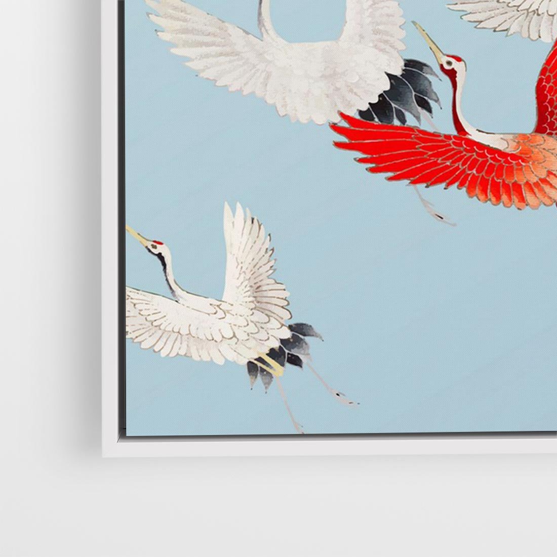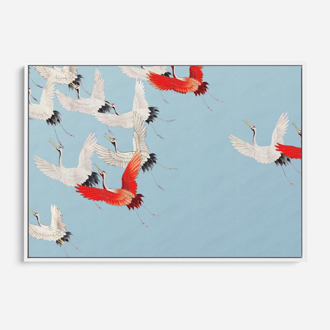 Obraz w ramie 120x80 - Eteryczne Żurawie - lecące żurawie, orientalna sztuka - rama biała