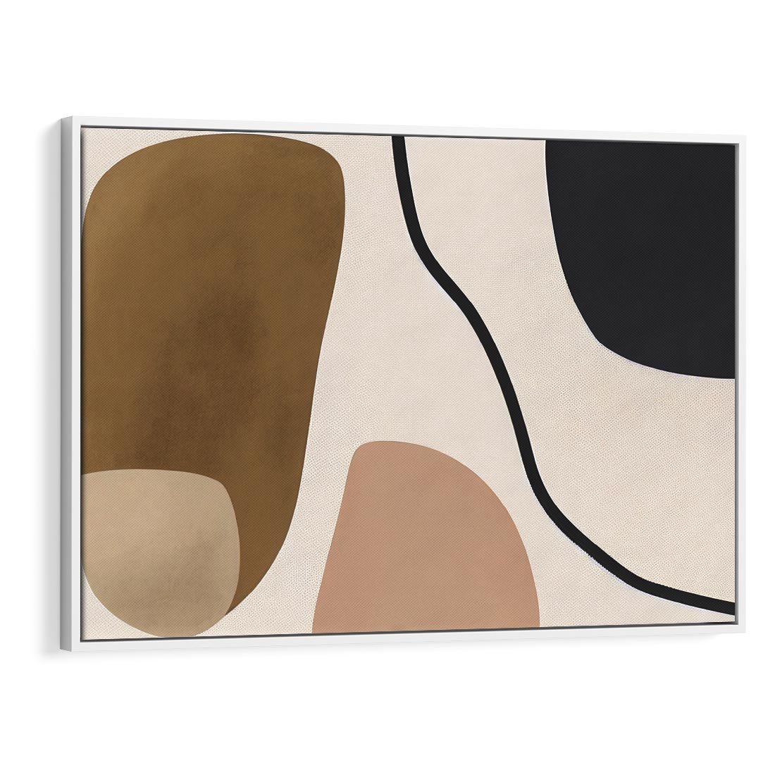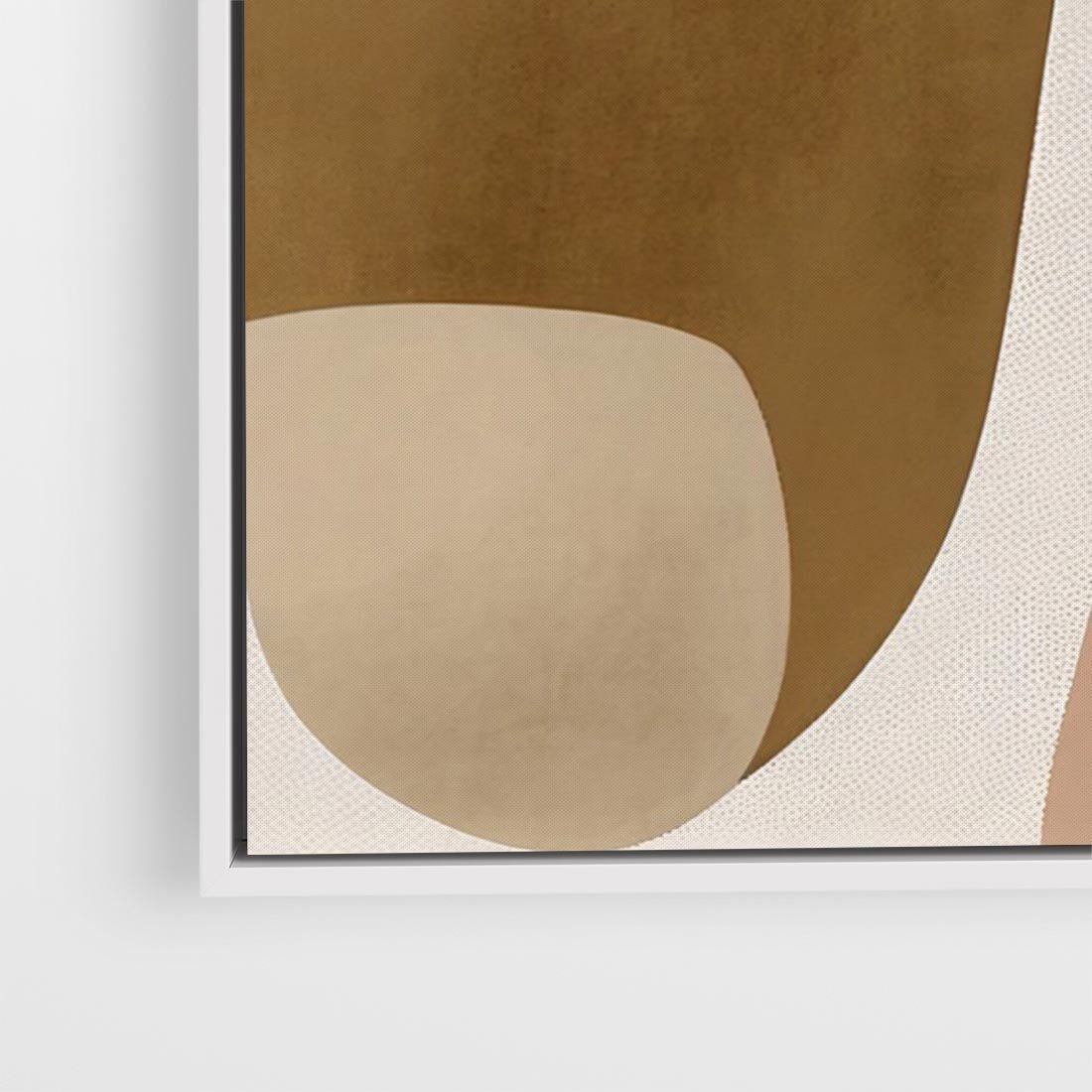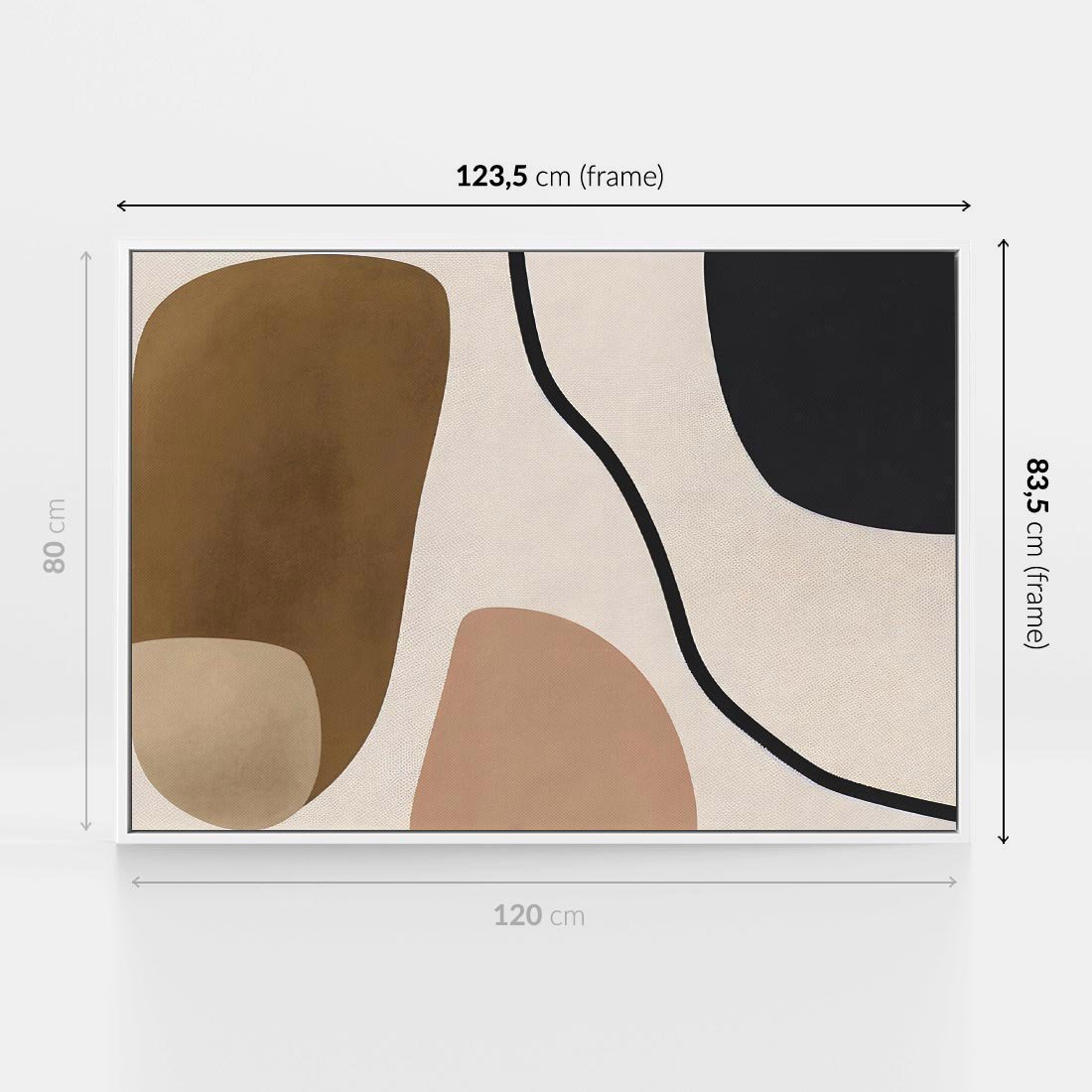 Obraz w ramie 120x80 - Harmonia chaosu i porządku - abstrakcyjne kształty, kolory beżu i brązu - rama biała