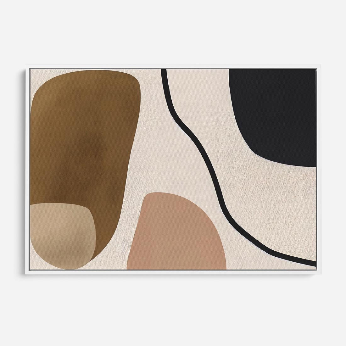 Odkryj niezwykły obraz przedstawiający abstrakcyjne kształty w odcieniach beżu i brązu, z akcentami czerni. W stylu boho, to dzieło sztuki emanuje naturalnym pięknem. Stworzone dla miłośników kreatywności i artystycznego wyrazu, pragnących wprowadzić do swoich wnętrz oryginalny i wyrafinowany akcent. Doskonały sposób na podkreślenie charakteru i wyjątkowości każdej przestrzeni.