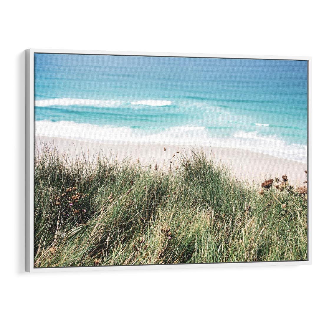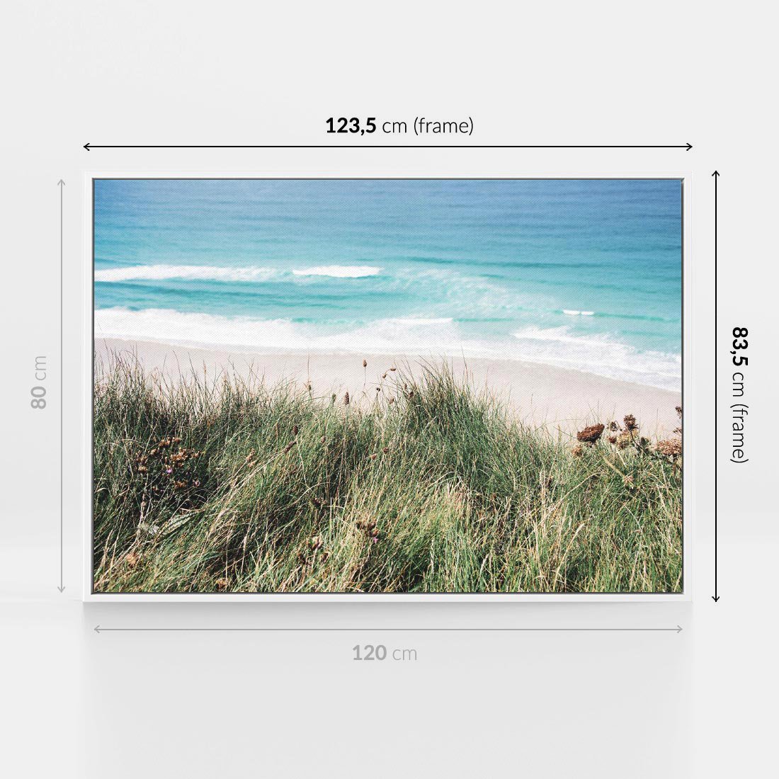 Obraz w ramie 120x80 - Harmonia Natury - widok z wydm, wydmy porośnięte trawami - rama biała