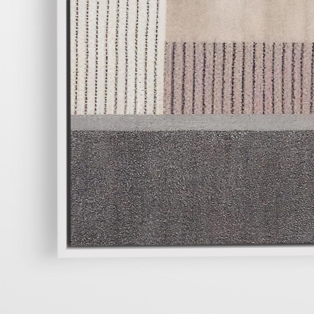 Odkryj minimalistyczny obraz o symetrycznych, geometrycznych pasach w odcieniach szarości i beżu. Tekstura betonu dodaje mu surowego uroku loftowego stylu. To dzieło sztuki stworzone dla miłośników minimalizmu i industrialnej estetyki, pragnących wprowadzić harmonię i nowoczesny wyraz do swoich wnętrz. Doskonały akcent dla loftowych przestrzeni.