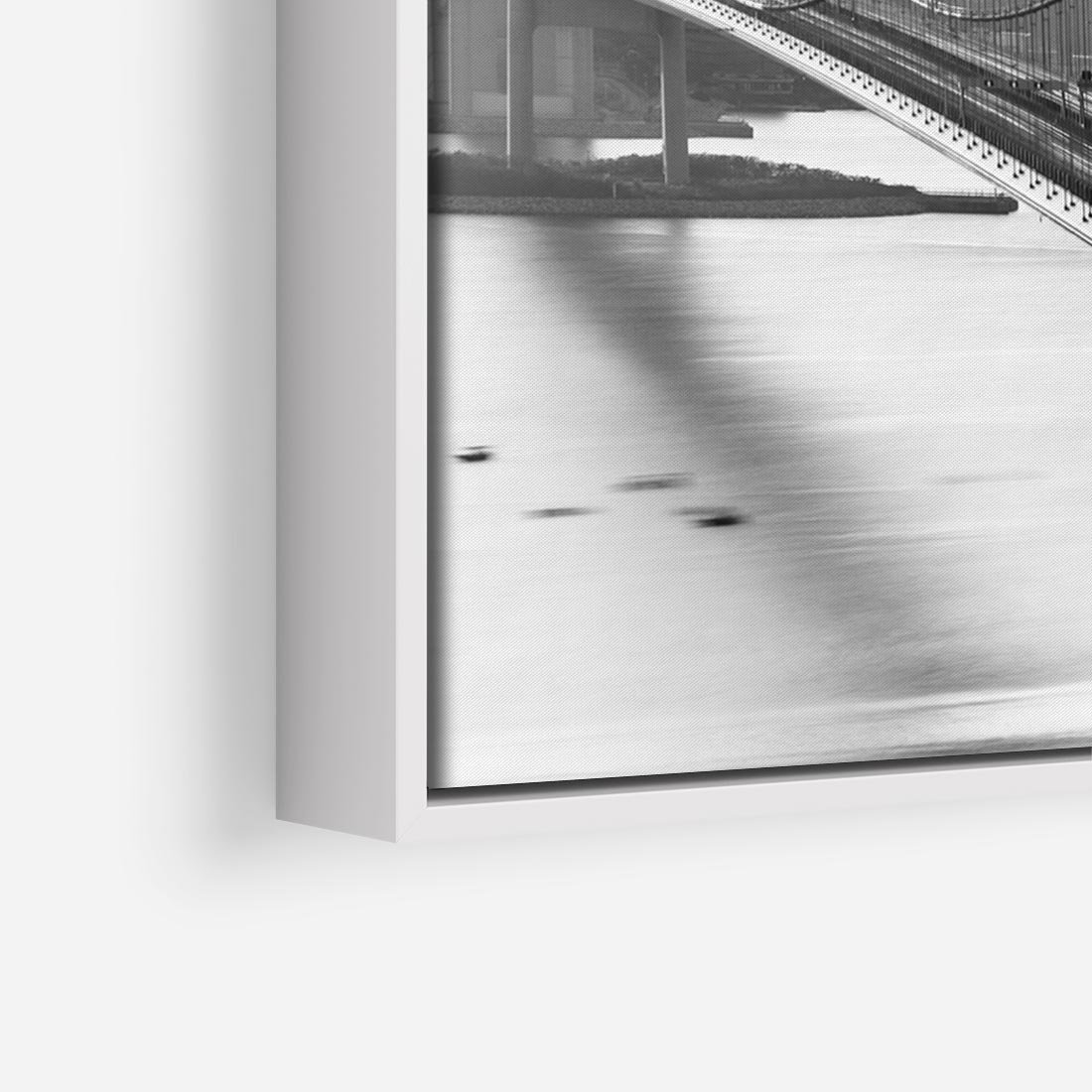 Obraz w ramie 120x80 - Ikona Miasta - most Nowy Jork, czarno biała fotografia - rama biała
