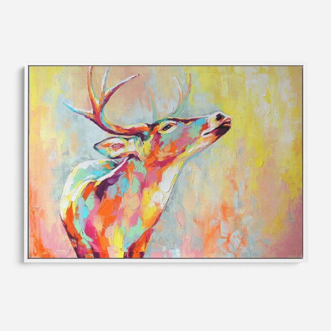Obraz w ramie 120x80 - Impresje snów malarza - kolorowy olejny obraz, jeleń ryczący na rykowisku - rama biała