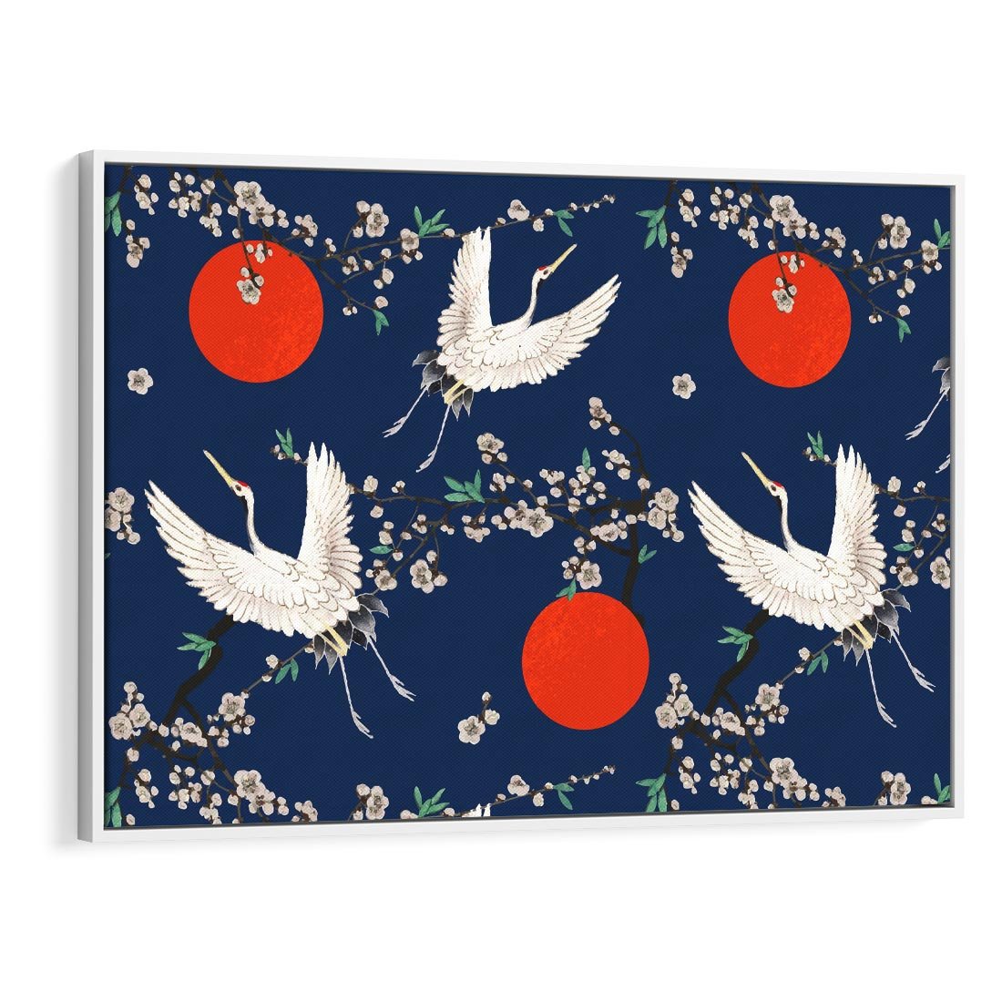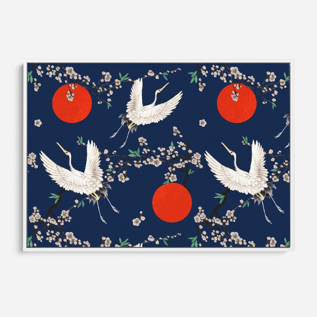 Obraz w ramie 120x80 - Japońskie Żurawie Indygo - sztuka japońska, japonia - rama biała