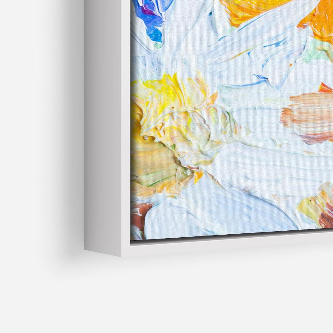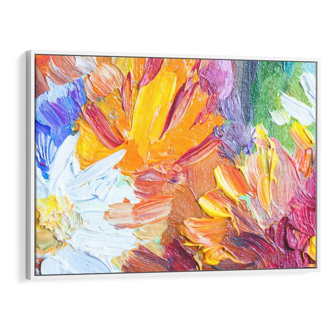 Obraz w ramie 120x80 - Kwiatowe Harmonie - zbliżenie na obraz olejny, gruba warstwa farby - rama biała