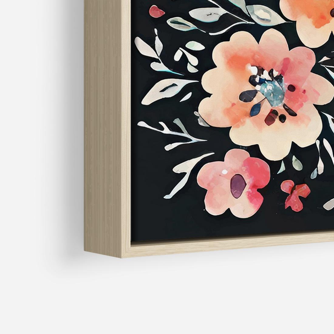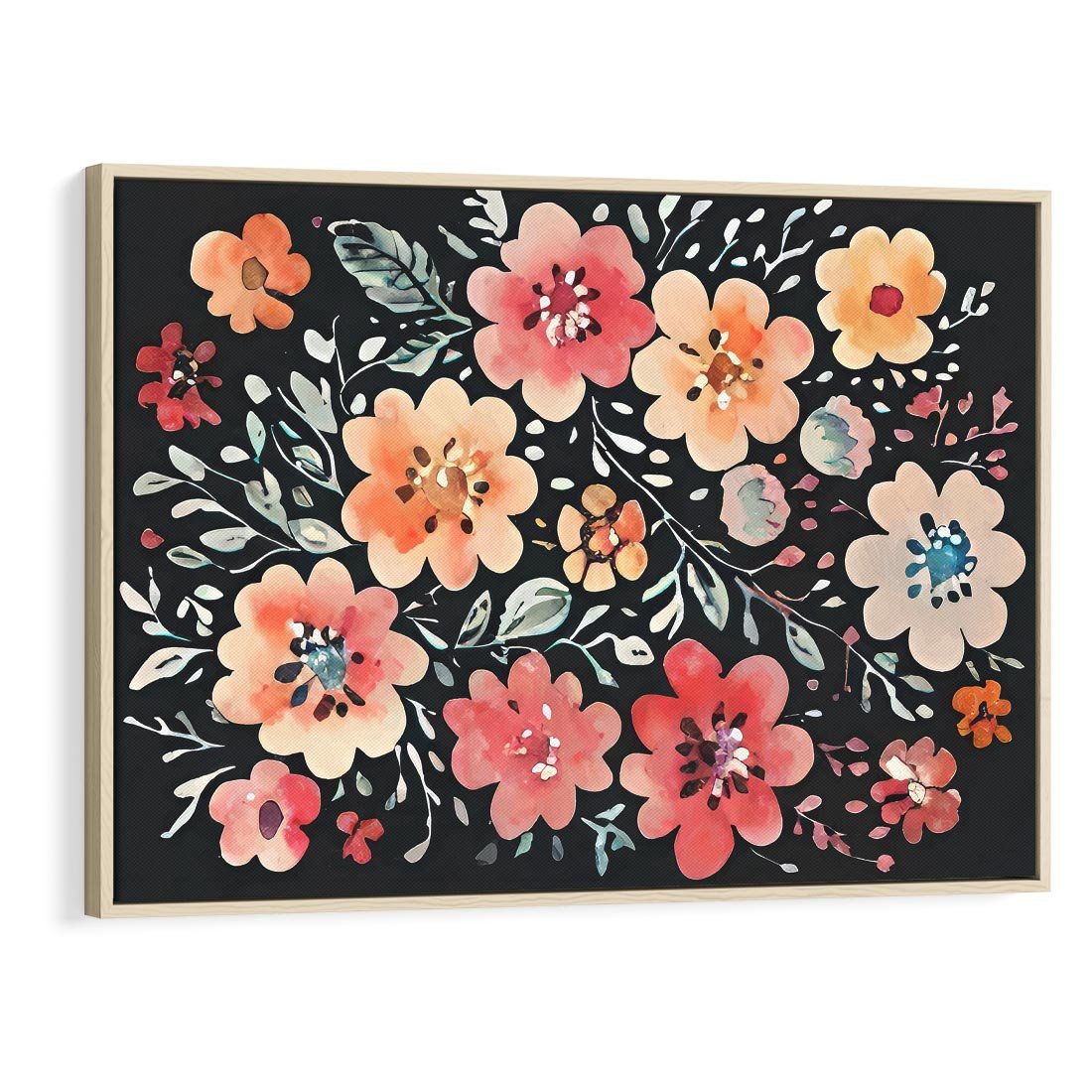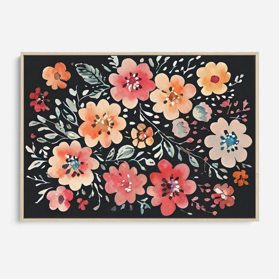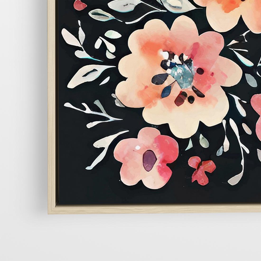 Obraz w ramie 120x80 - Labirynty melancholii - akwarelowe, pastelowe kwiaty na czarnym tle - rama drewno