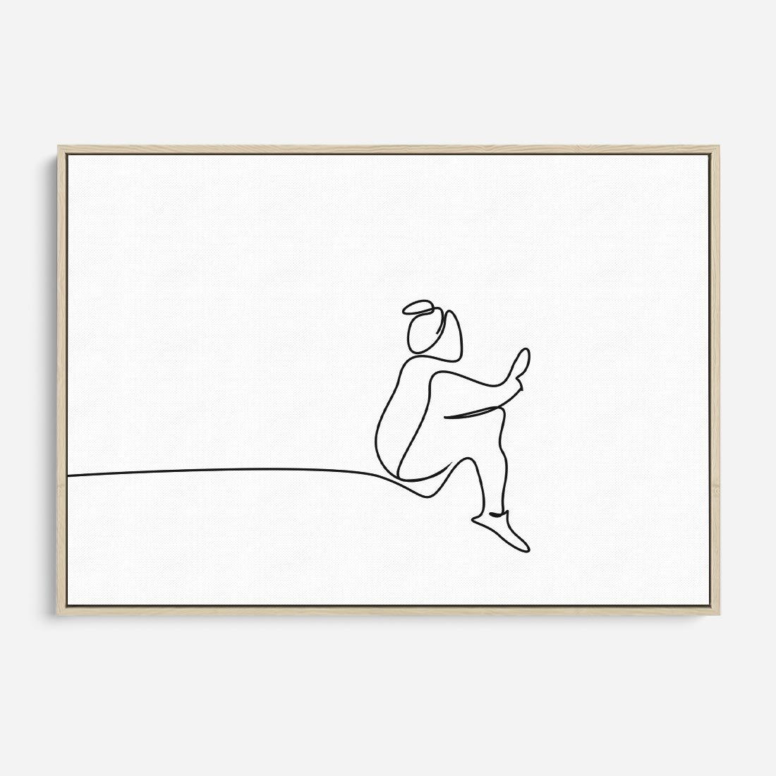 Ten abstrakcyjny obraz w stylu line art przedstawia minimalizm, gdzie jedynym znaczącym elementem jest kobieta czytająca książkę. Delikatne linie tworzą szkic, który podkreśla magię czytania i intymność chwili, pozwalając nam skoncentrować się na najważniejszych detalach.