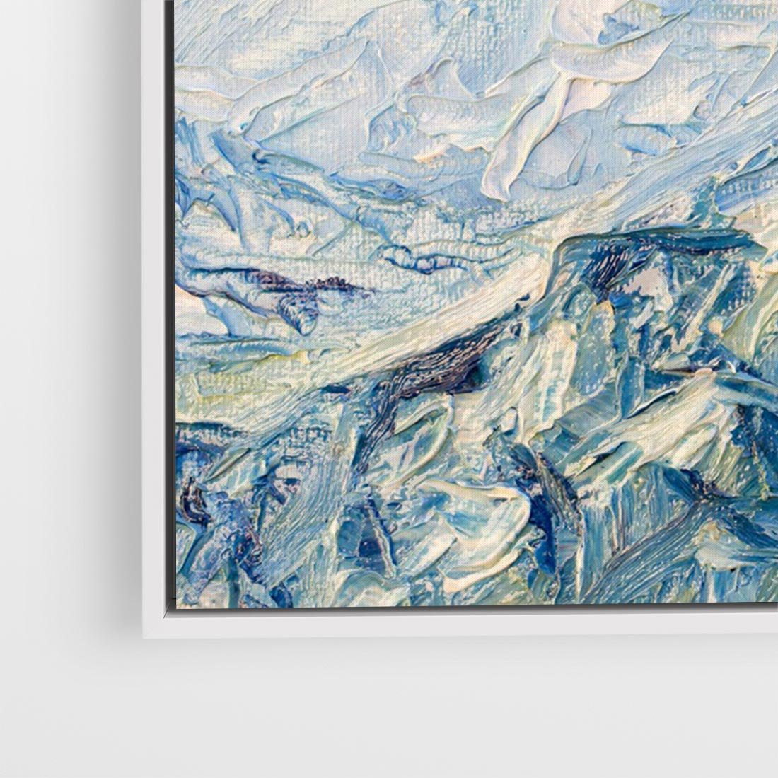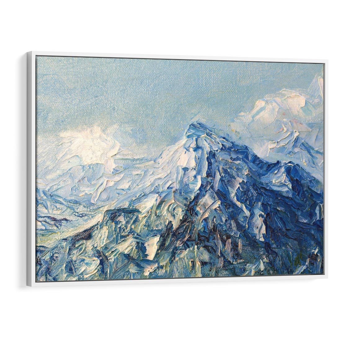Obraz w ramie 120x80 - Majestat Błękitnych Szczytów - olejny obraz, górski pejzaż - rama biała