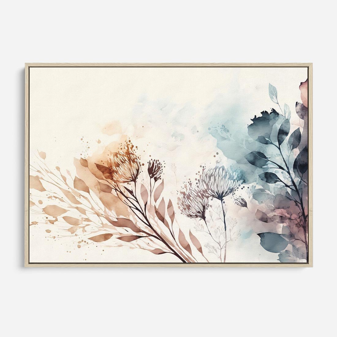 Obraz w ramie 120x80 - Nostalgiczne tańce pędzla - akwarelowe kwiaty, gałęzie - rama drewno