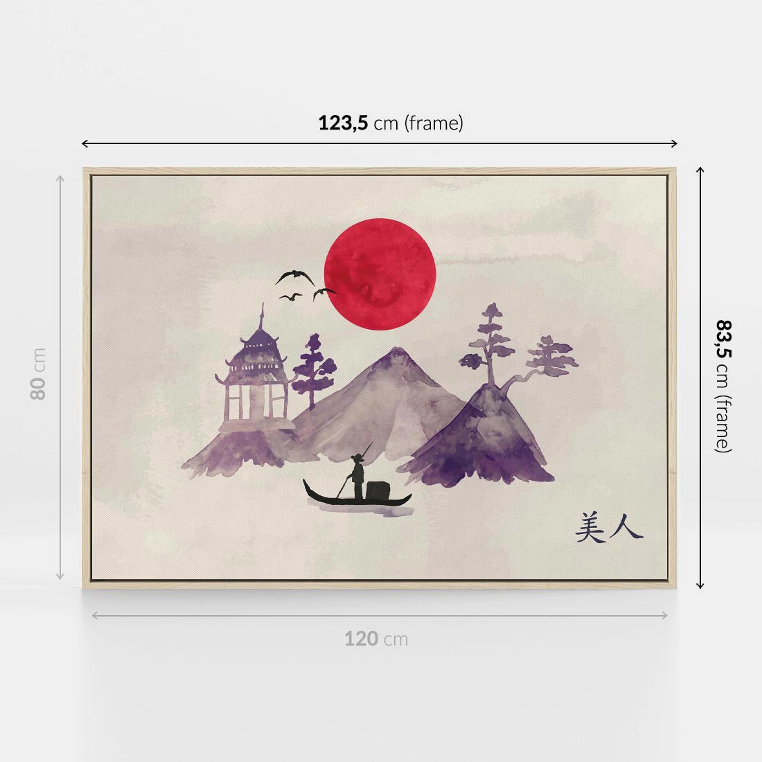 Obraz w ramie 120x80 - Odbicie Słońca - japońska sztuka, akwarela - rama drewno