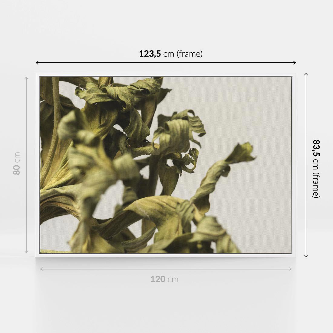 Przenikający obraz na płótnie ukazuje suche trawy i liście, oddając moment przejścia z pory deszczowej do pory suchej. Ich złociste barwy i delikatny ruch tworzą atmosferę zmiany i odrodzenia. Dodaj naturalny element do swojego wnętrza za pomocą tego pejzażowego dzieła sztuki.