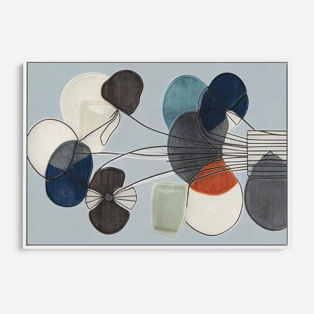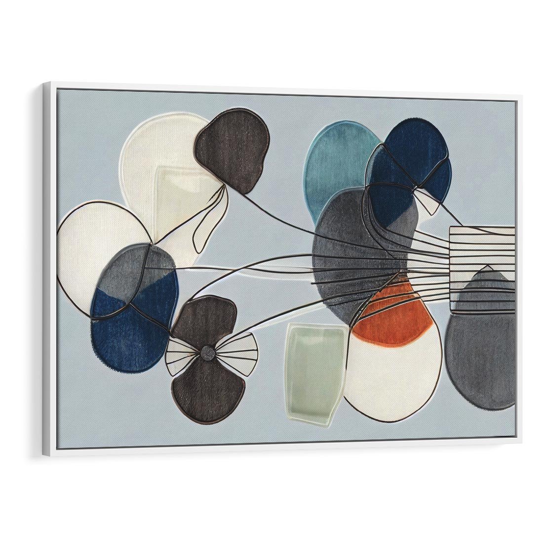 Obraz w ramie 120x80 - Plamy w Niebieskim - sztuka abstrakcyjna, linie - rama biała