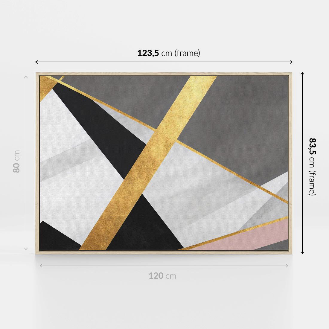 Obraz w ramie 120x80 - Pudrowe Abstrakcyjne Lustra - złote abstrakcyjne linie, szarość - rama drewno