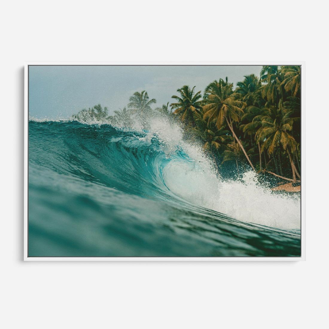 Obraz w ramie 120x80 - Rajskie Wybrzeże - fotografia, duża fala - rama biała