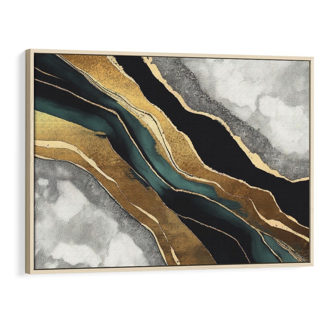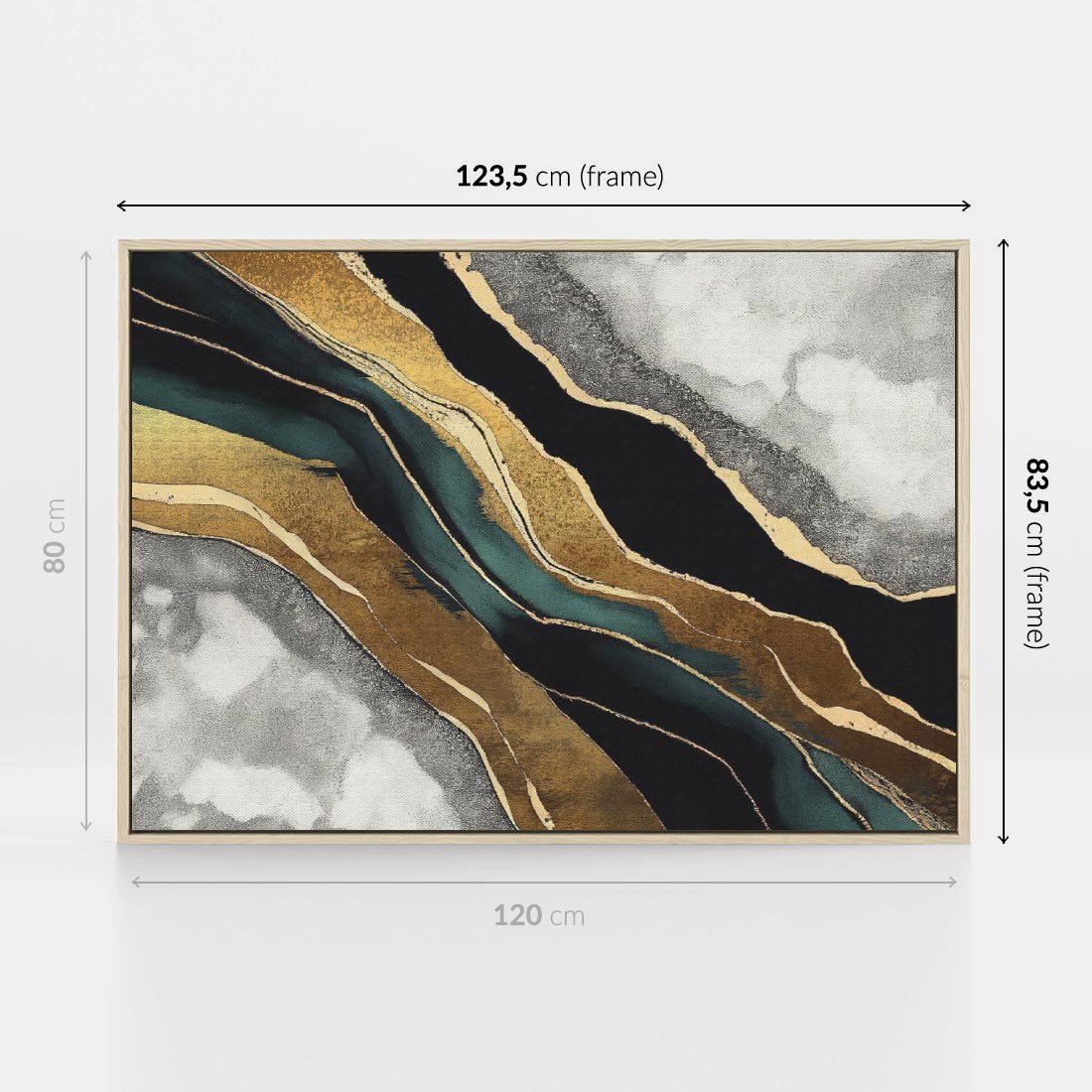 Obraz w ramie 120x80 - Refrakcje płynącej rzeczywistości - jak marmurowa rzeka, linie złota - rama drewno