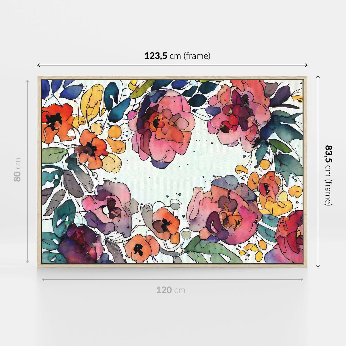 Obraz w ramie 120x80 - Rozkwitające marzenia - akwarelowe kwiaty, kolory - rama drewno