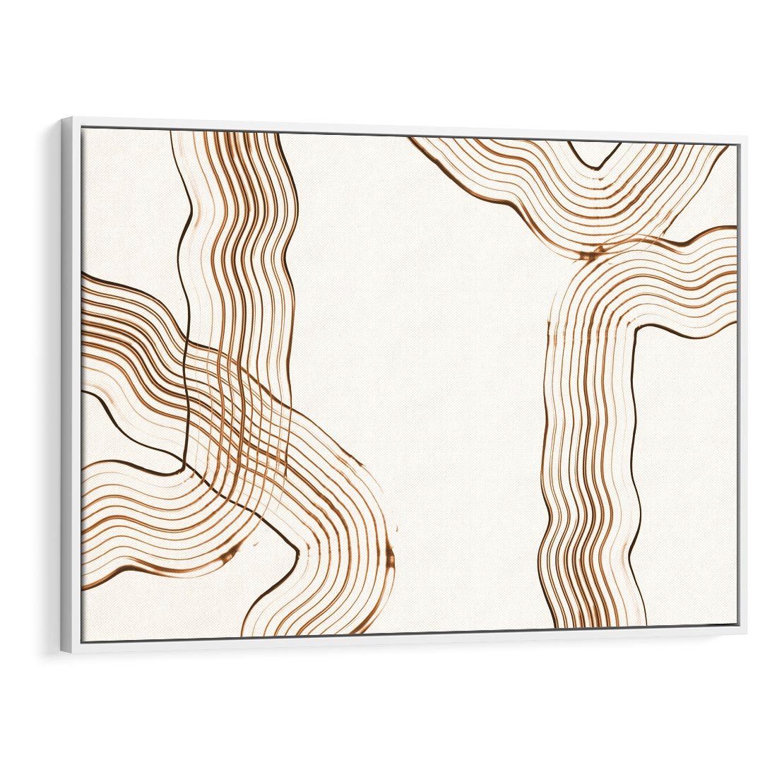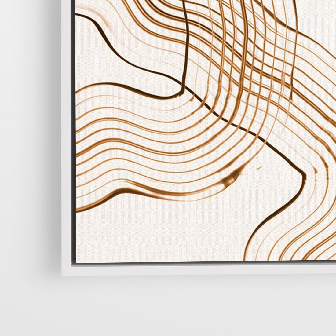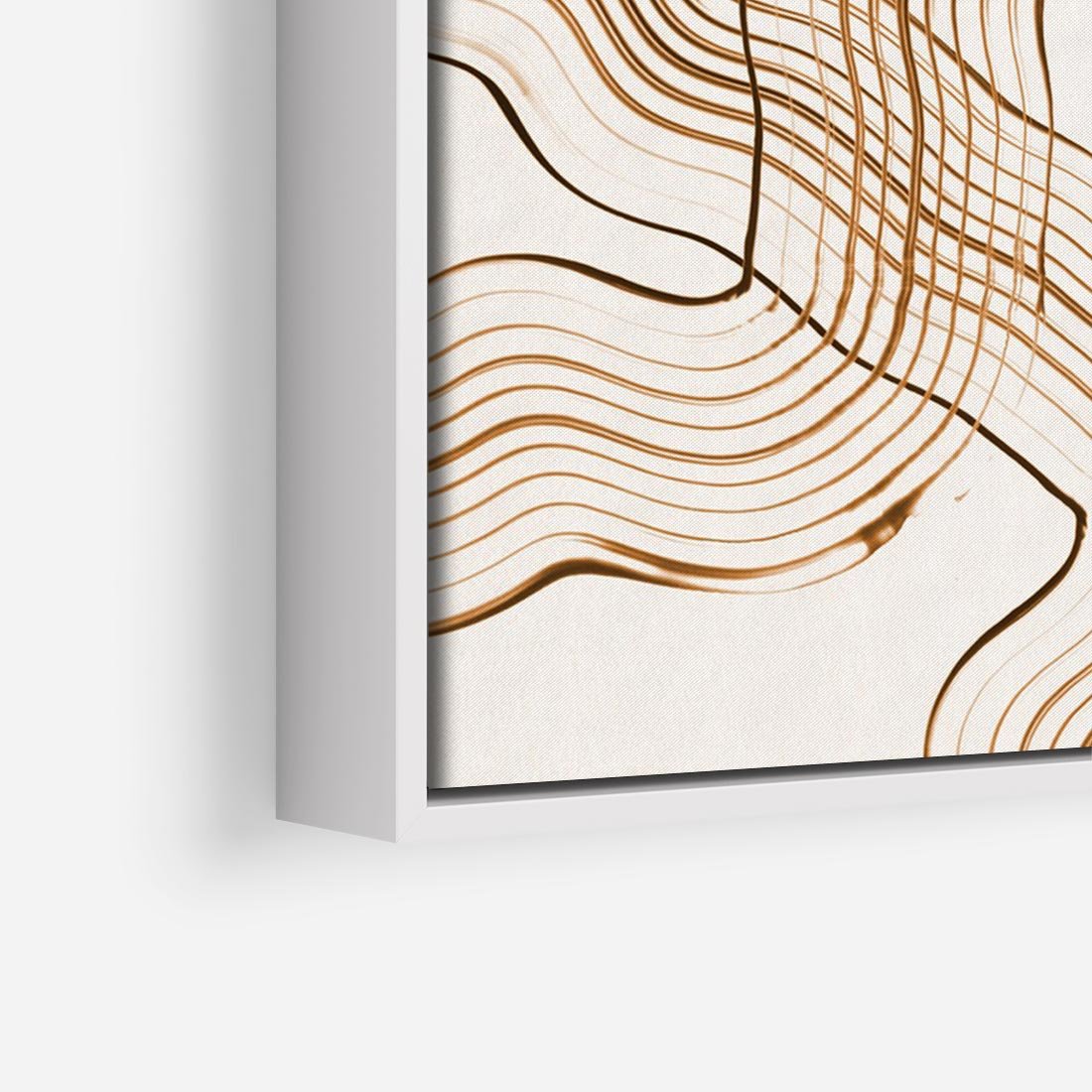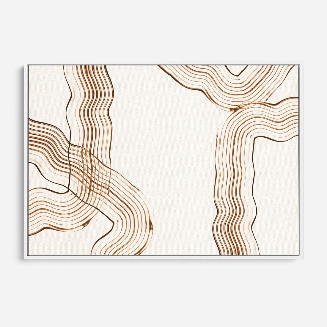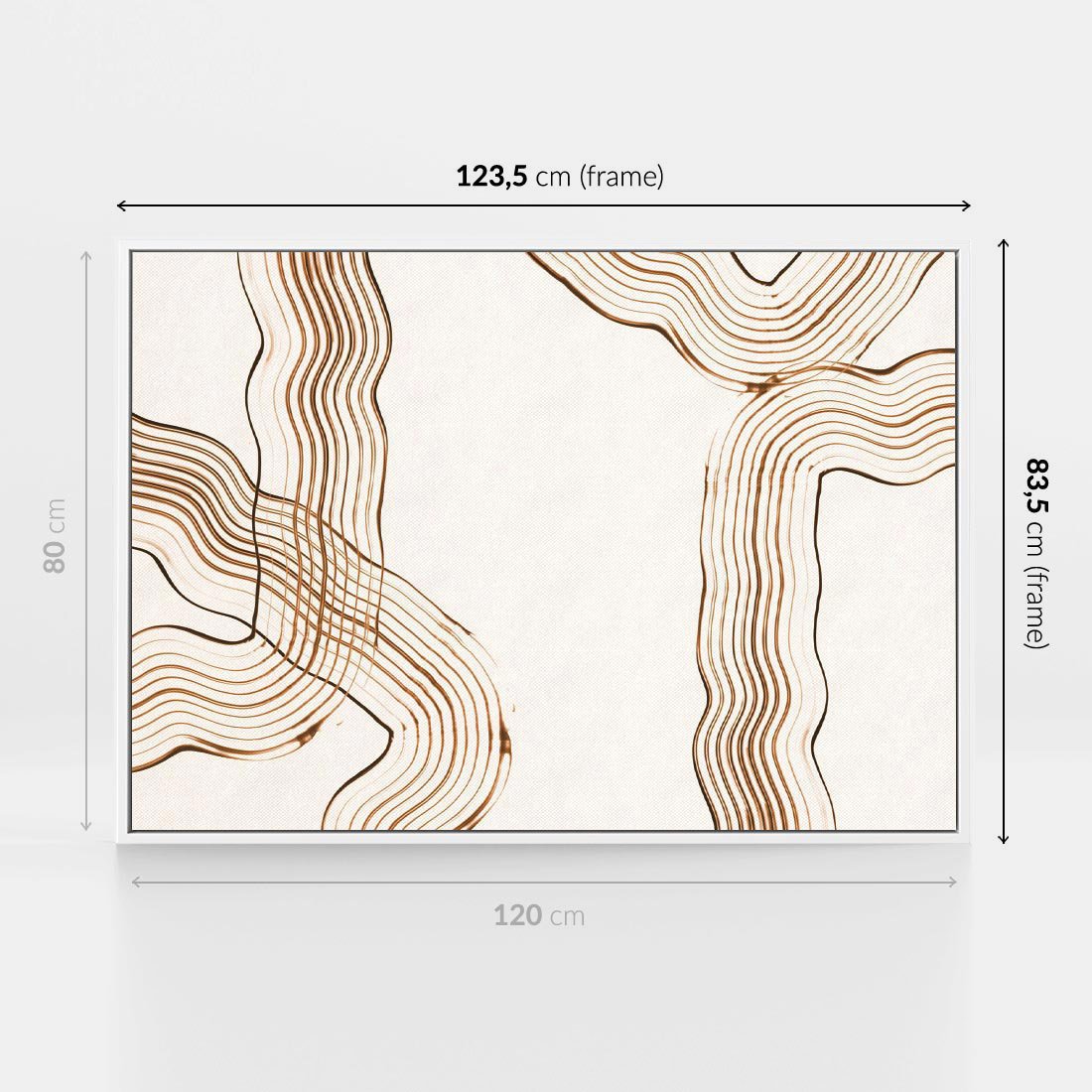 To minimalistyczne dzieło sztuki prezentuje abstrakcyjne brązowe linie kontrastujące na czystym białym tle. Kompozycja skupia się na prostocie formy i ekspresji, co nadaje obrazowi elegancji i nowoczesności. Kontrast pomiędzy brązowymi liniami a jasnym tłem tworzy harmonijny efekt, przyciągając wzrok i zapraszając do refleksji nad znaczeniem formy i kształtu.