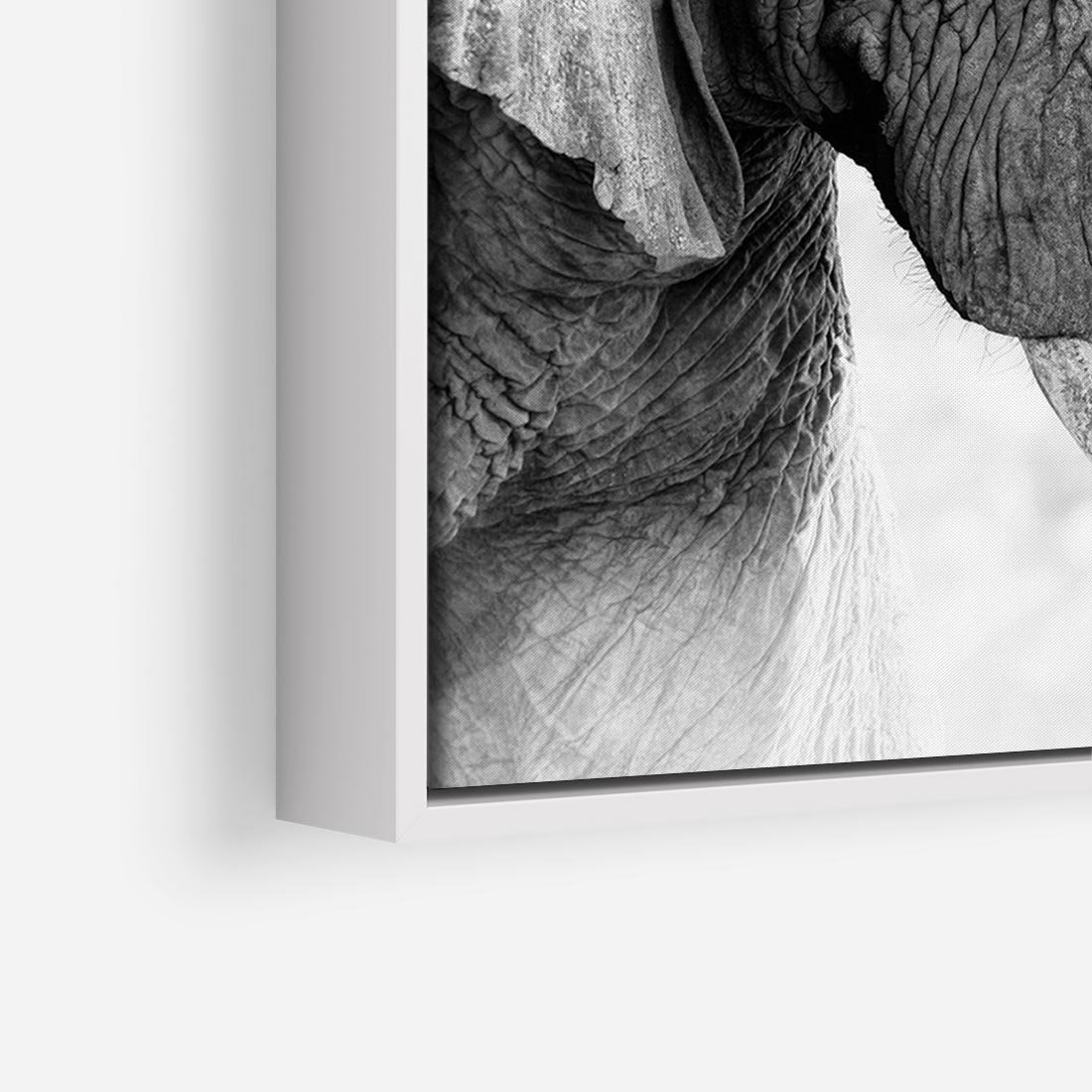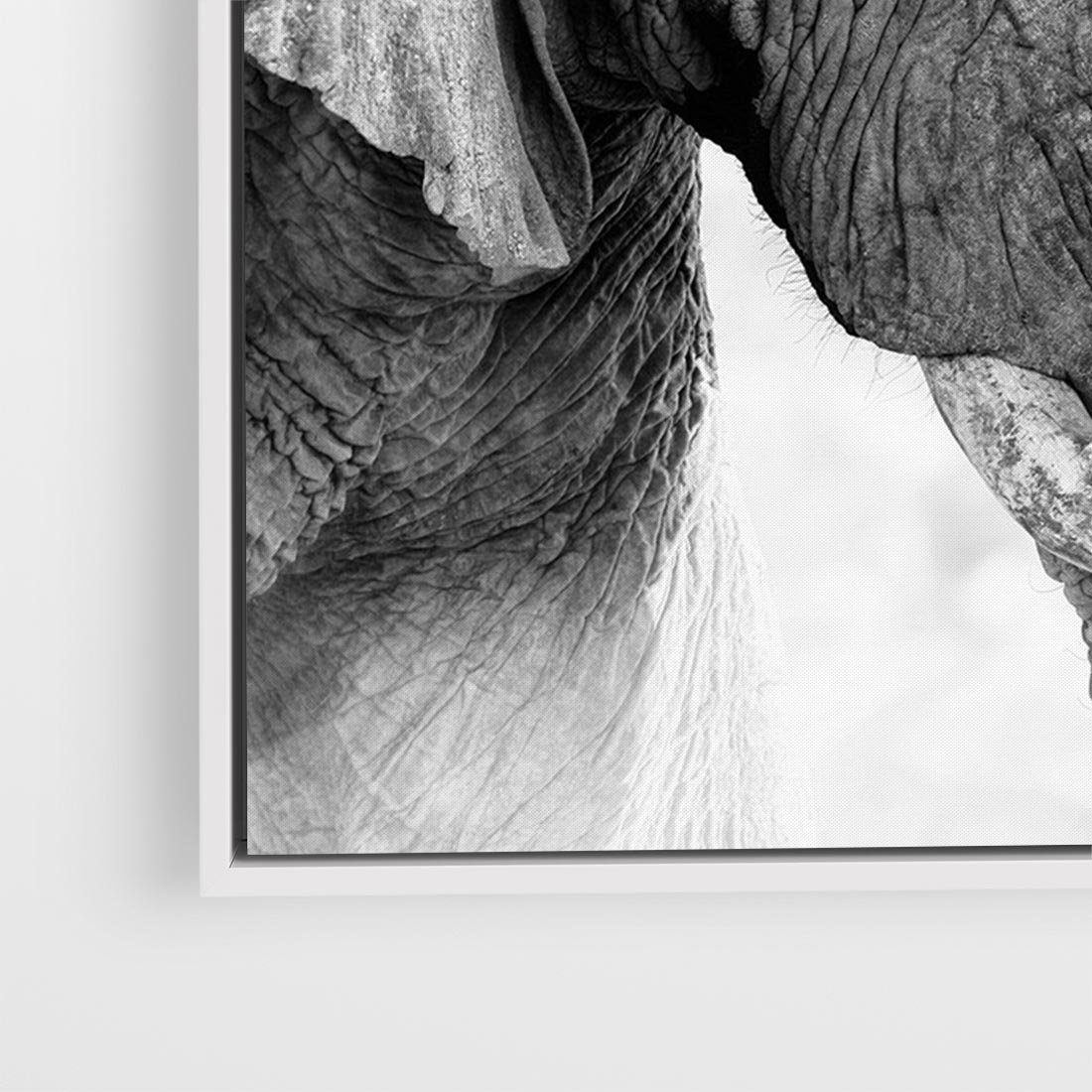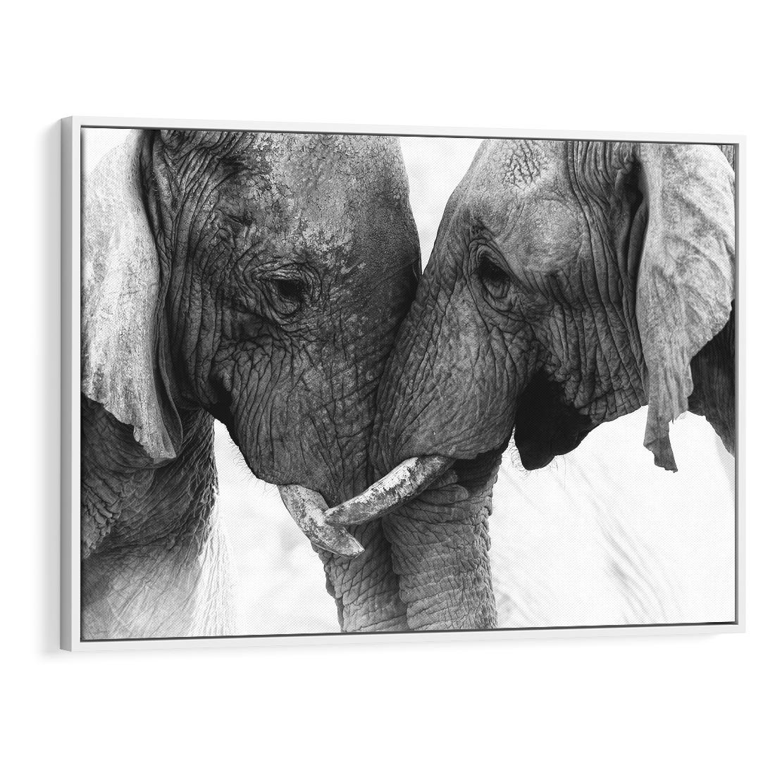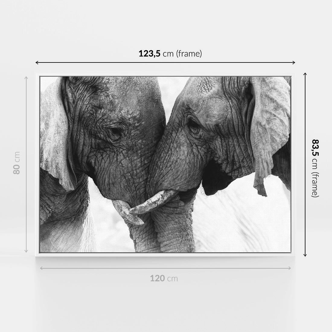 Obraz w ramie 120x80 - Spotkanie Mądrości - fotografia czarno biała, dwa słonie - rama biała