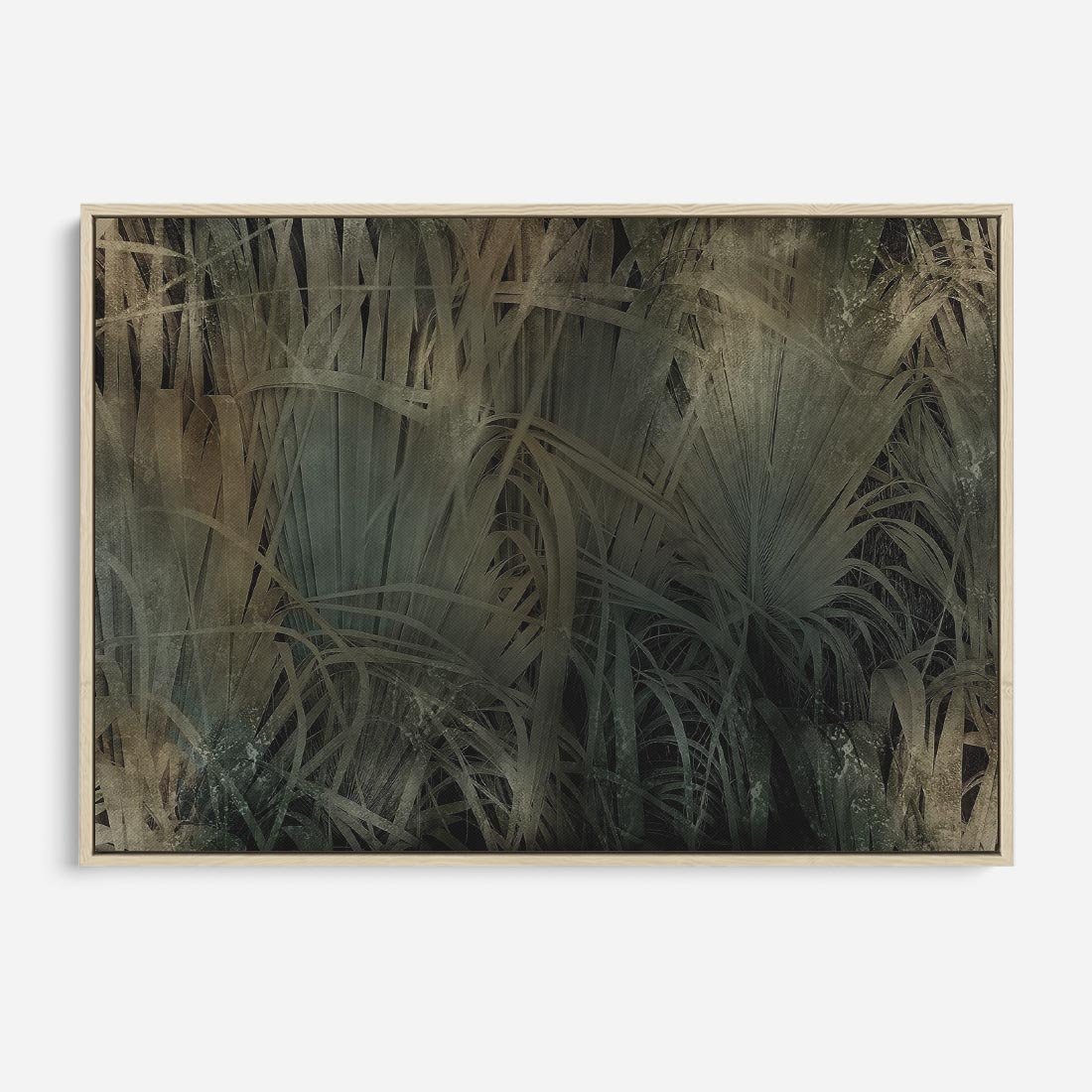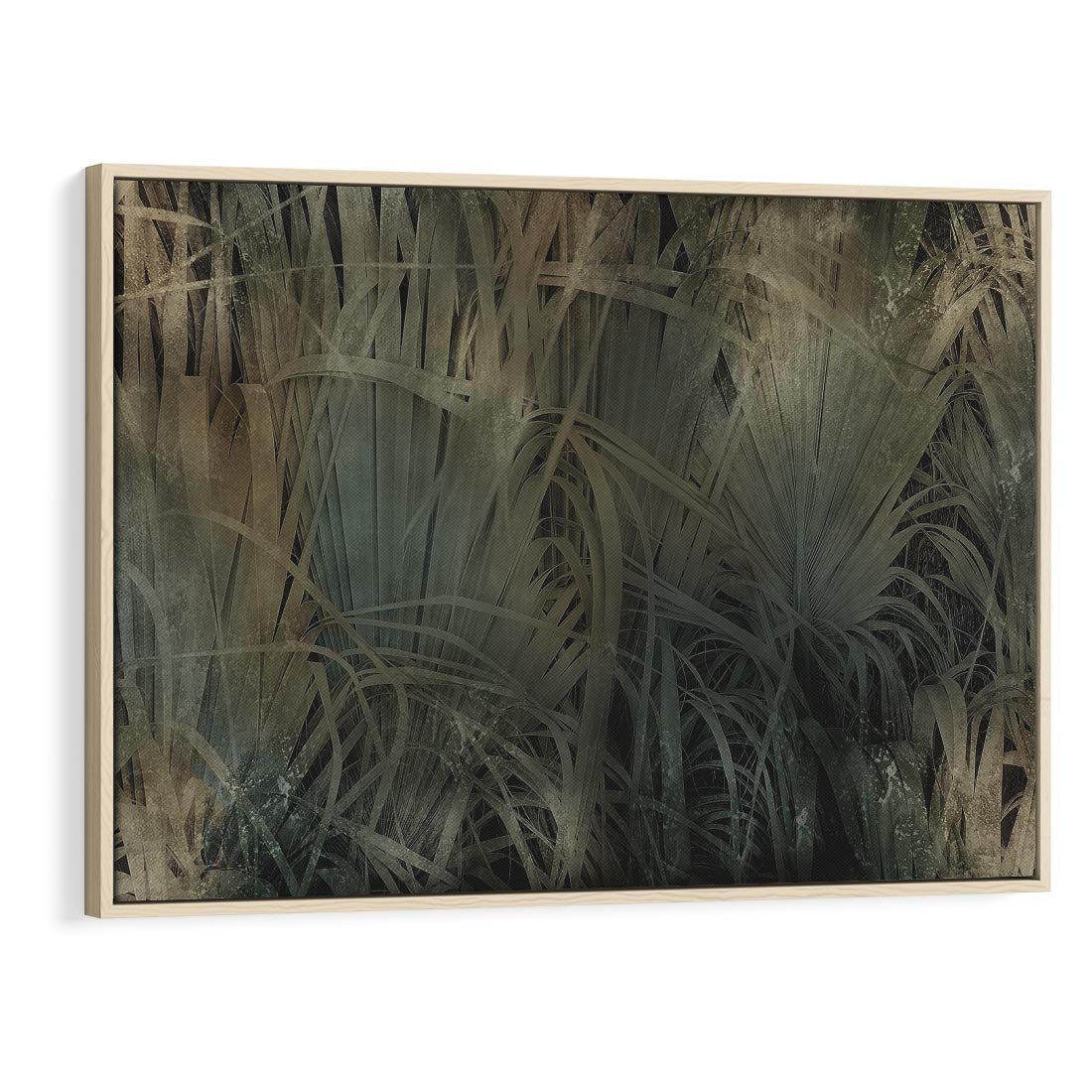 Obraz w ramie 120x80 - Światło w mroku duszy - liście traw, mroczny klimat - rama drewno