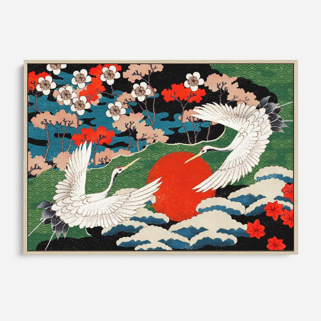 Podziwiaj wyjątkowy obraz inspirowany sztuką japońską, gdzie wyraziste kolory ożywiają motywy żurawi i kwitnącej wiśni. To dzieło sztuki stworzone dla miłośników delikatnej estetyki i symboli natury. Doskonały akcent dla tych, którzy pragną wprowadzić harmonię, piękno przyrody oraz ducha Japonii do swoich wnętrz.