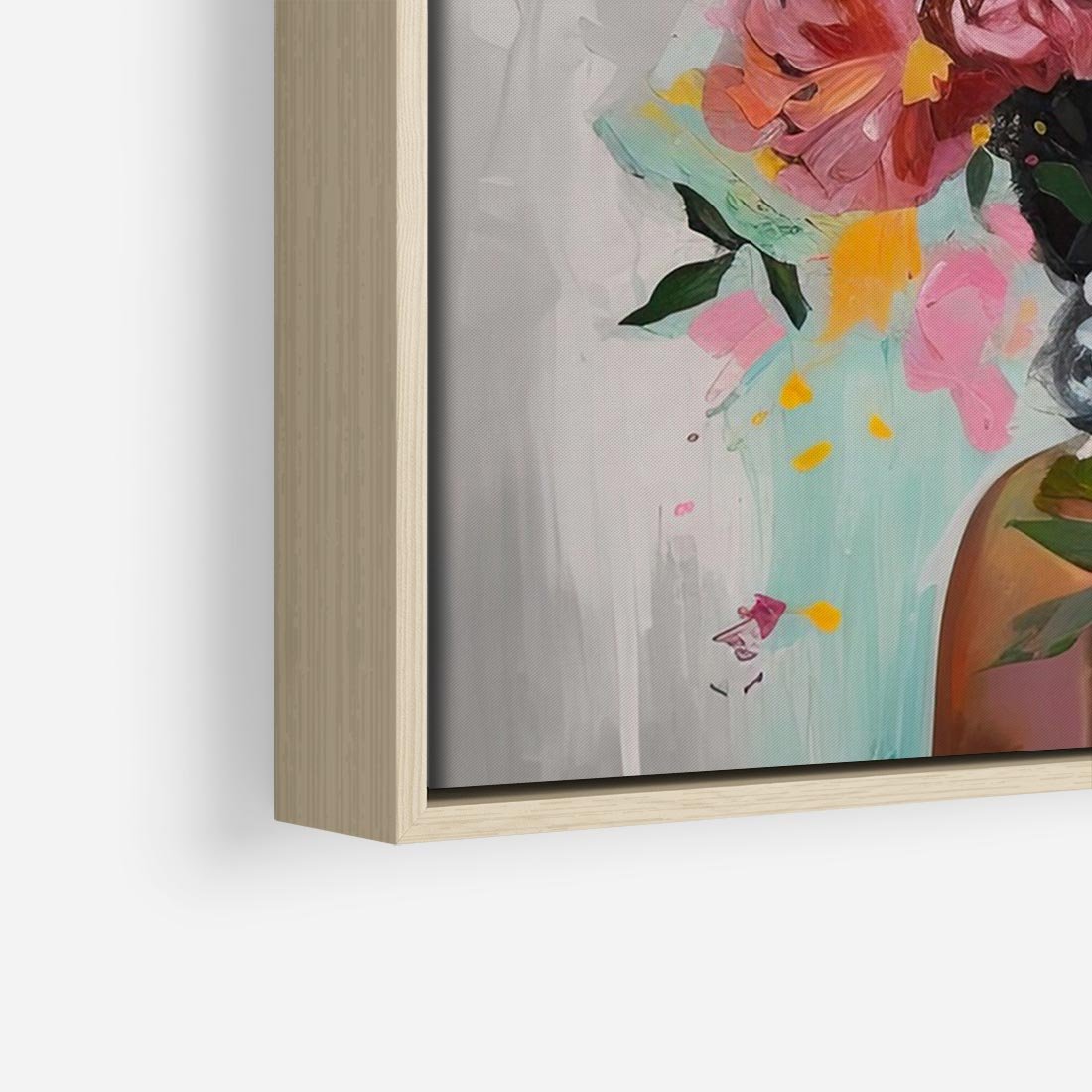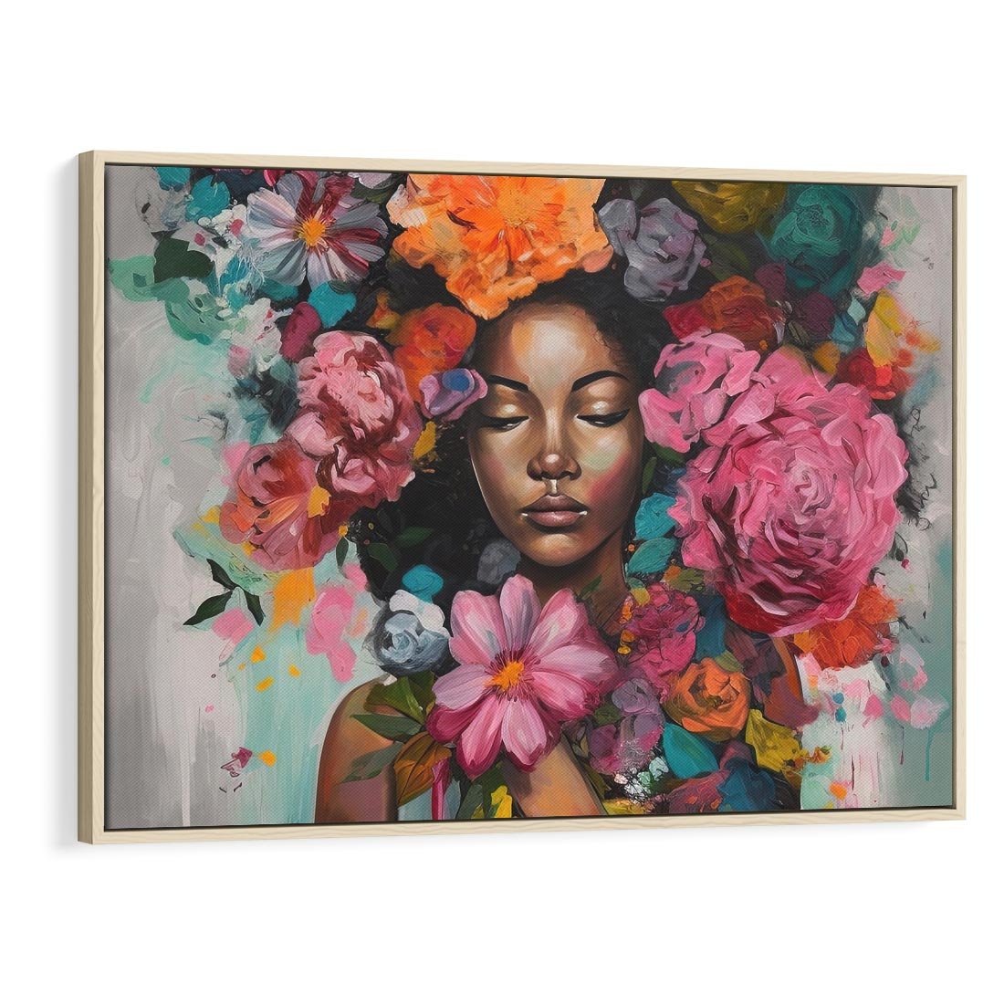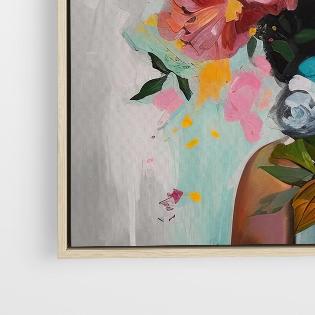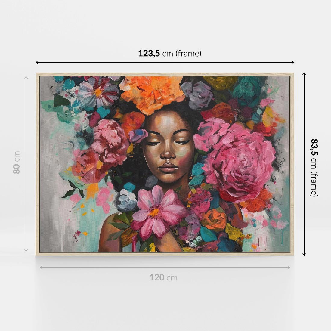 Obraz w ramie 120x80 - Z Głową w Kwiatach - obraz olejny, sztuka nowoczesna - rama drewno