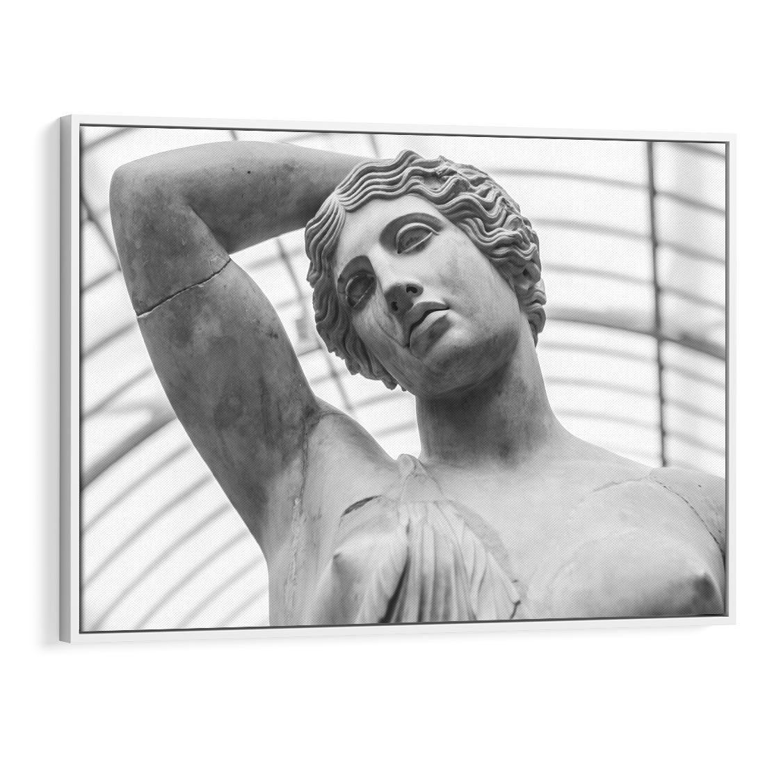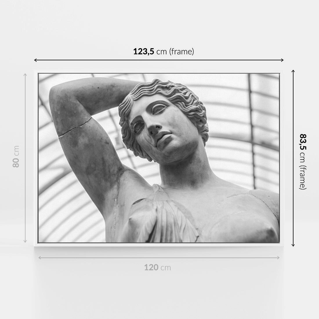 Obraz w ramie 120x80 - Zaklęta w Kamieniu - antyczna rzeźba kobiety na fotografii, czarno biała - rama biała