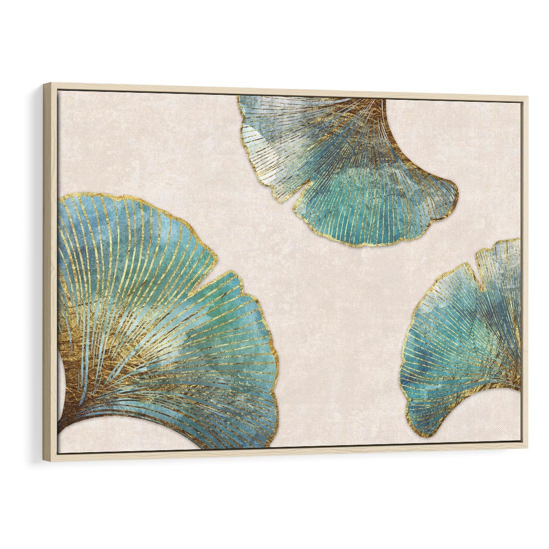 Obraz w ramie 120x80 - Złota Melodia Liści - złote, turkusowe liście miłorzębu - rama drewno