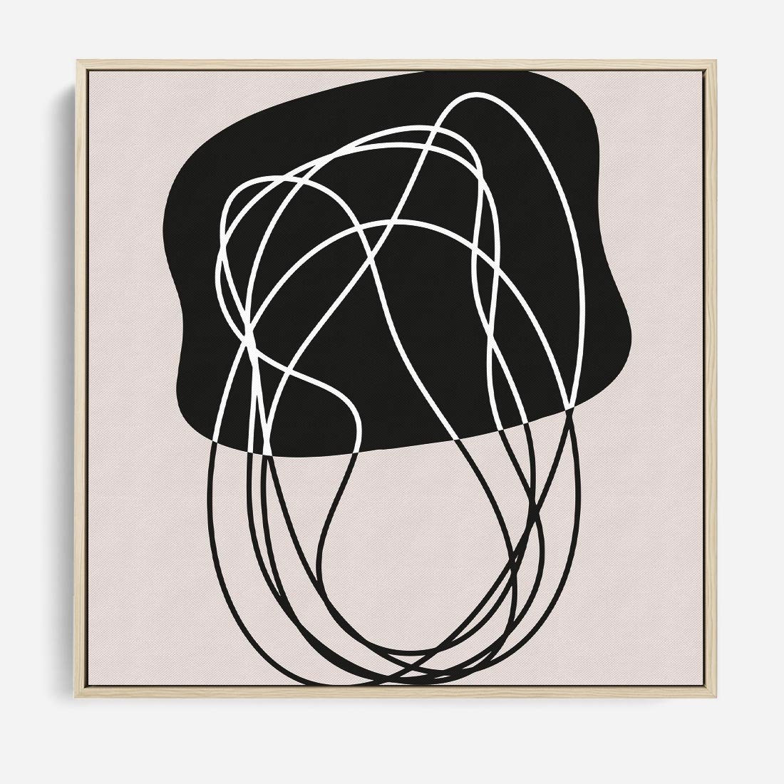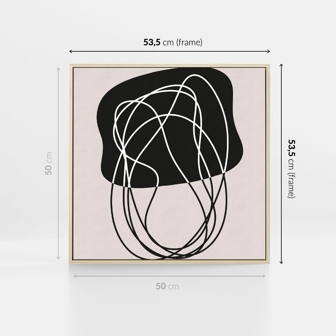 Obraz w ramie 50x50 - Abstrakcyjne Harmonie - abstrakcyjne szkicowane linie, minimalizm - rama drewno