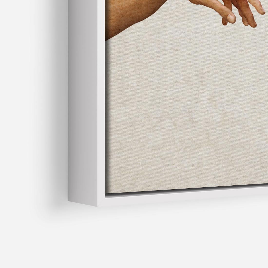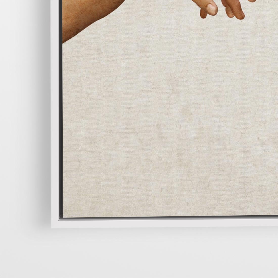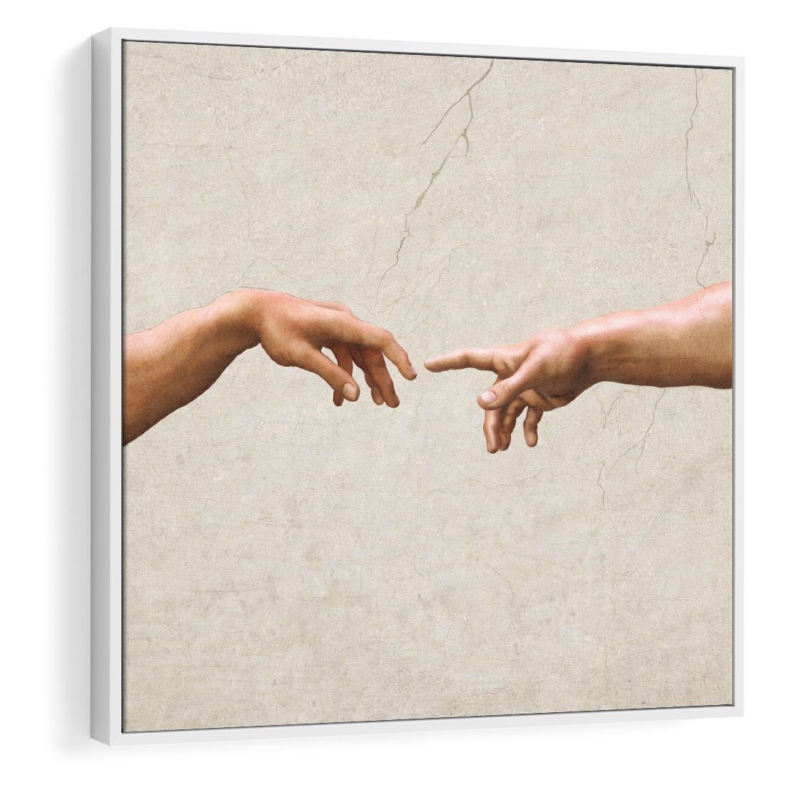 Ten wyjątkowy obraz stanowi hołd dla sztuki antyku i Michała Anioła. Ukazuje chwile Stworzenia Adama, gdzie ręka Boga dotyka ludzkiej dłoni. Wyrazista kompozycja i mistyczna atmosfera przyciągają wzrok i inspirują do refleksji nad siłą ducha i piękna boskiej twórczości.