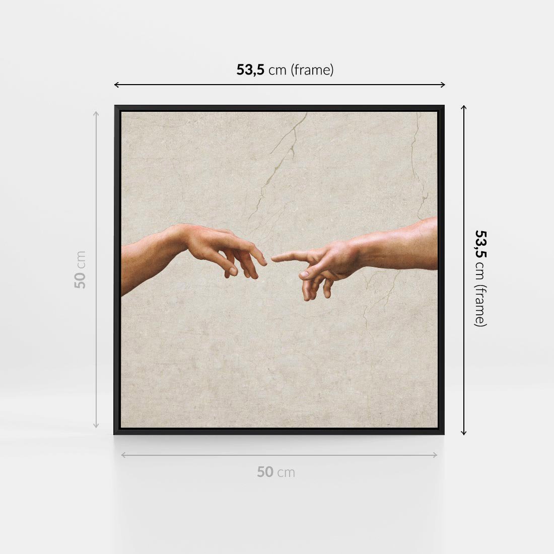 Ten wyjątkowy obraz stanowi hołd dla sztuki antyku i Michała Anioła. Ukazuje chwile Stworzenia Adama, gdzie ręka Boga dotyka ludzkiej dłoni. Wyrazista kompozycja i mistyczna atmosfera przyciągają wzrok i inspirują do refleksji nad siłą ducha i piękna boskiej twórczości.