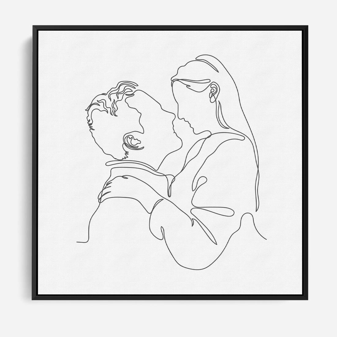 Zakochana para - kobieta i mężczyzna, połączeni jedną linią, ukazując ich związek i bliskość w prostym, ale wyrazistym szkicu.