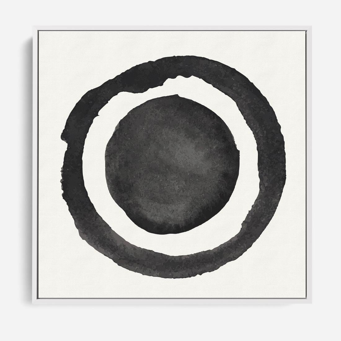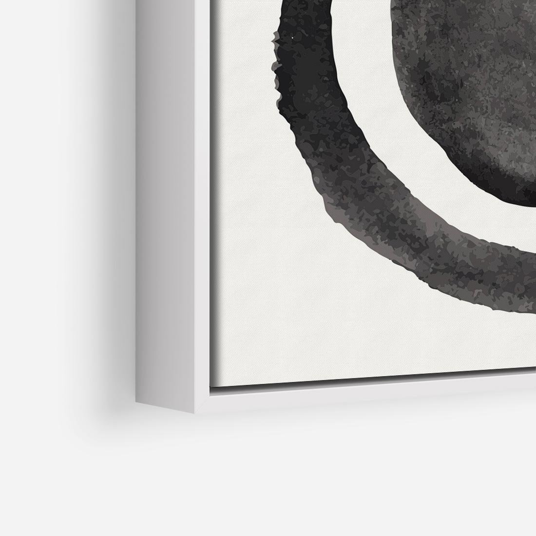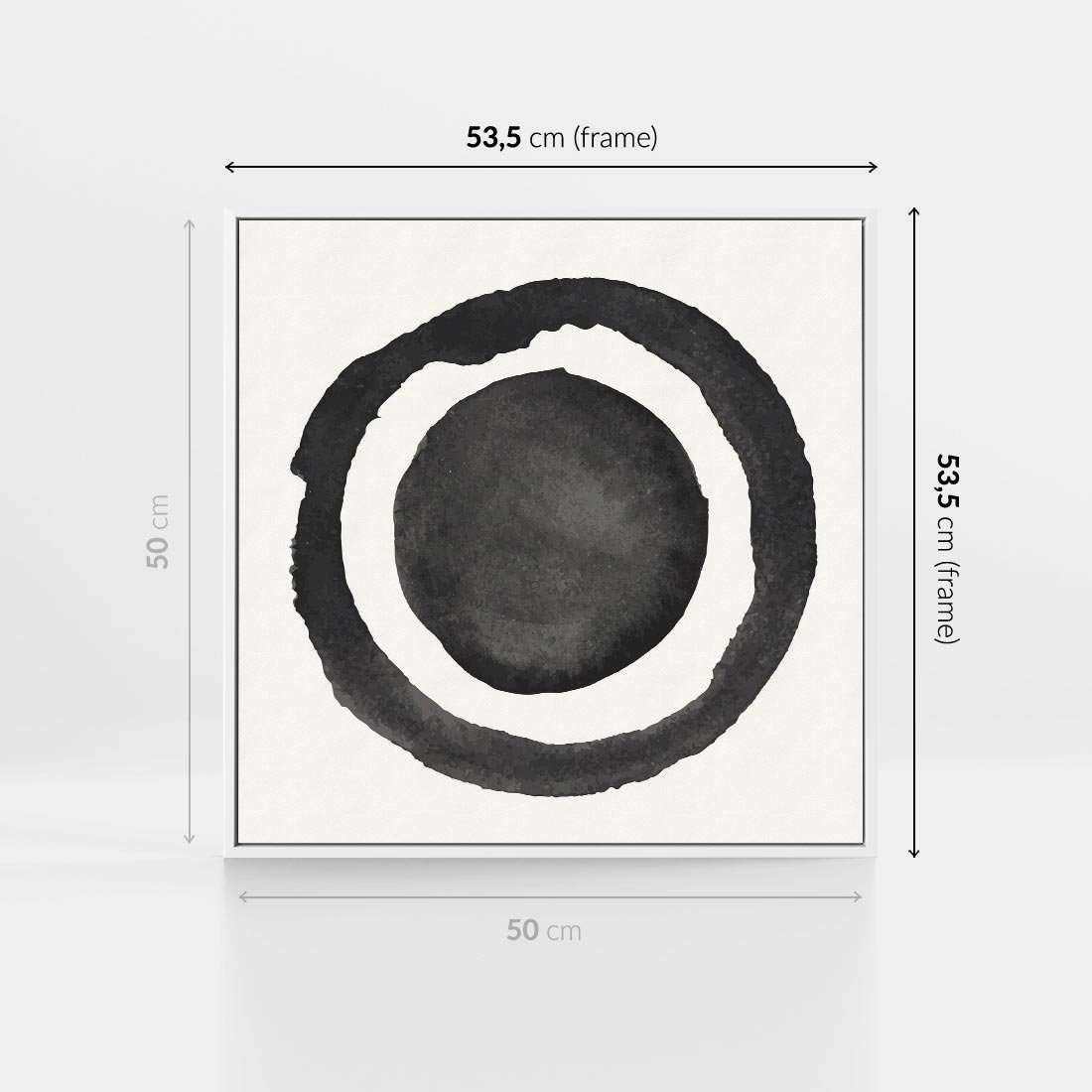 Ten wyjątkowy obraz łączy abstrakcyjne plamy i okręgi w delikatnych odcieniach akwareli. Biało-czarna kolorystyka niesie ze sobą minimalistyczną estetykę, tworząc harmonijną kompozycję.