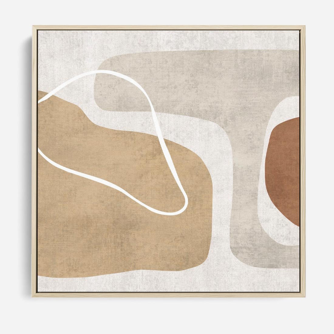 Obraz w ramie 50x50 - Beżowa Harmonia - abstrakcyjne, nieregularne plamy - rama drewno