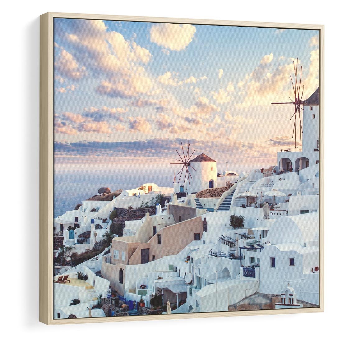 Obraz w ramie 50x50 - Biel ponad Błękitem - Santorini, białe budynki - rama drewno