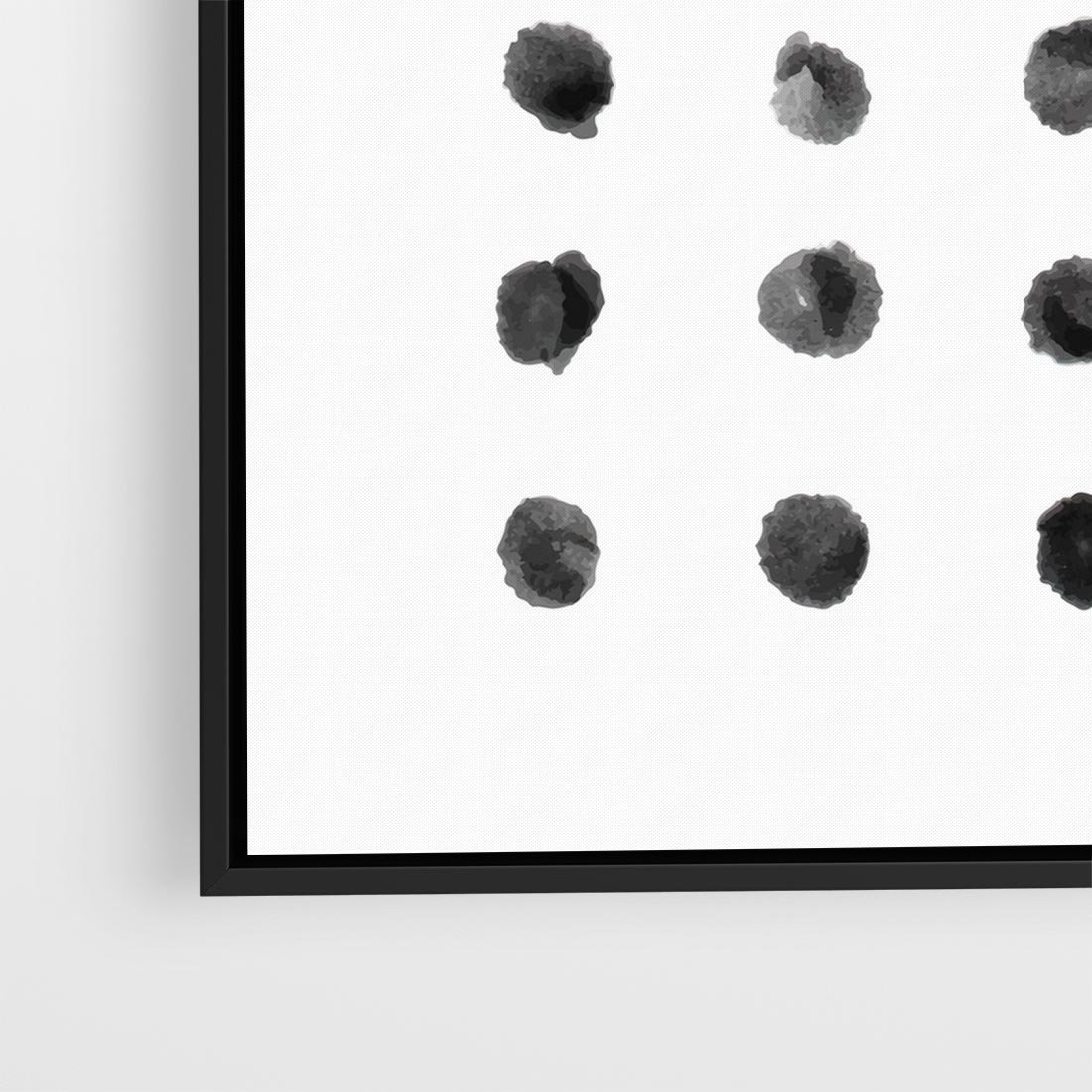 Obraz w ramie 50x50 - Boho Sztuka Wolości - minimalistyczny plakat, czarne kropki na białymtle - rama czarna