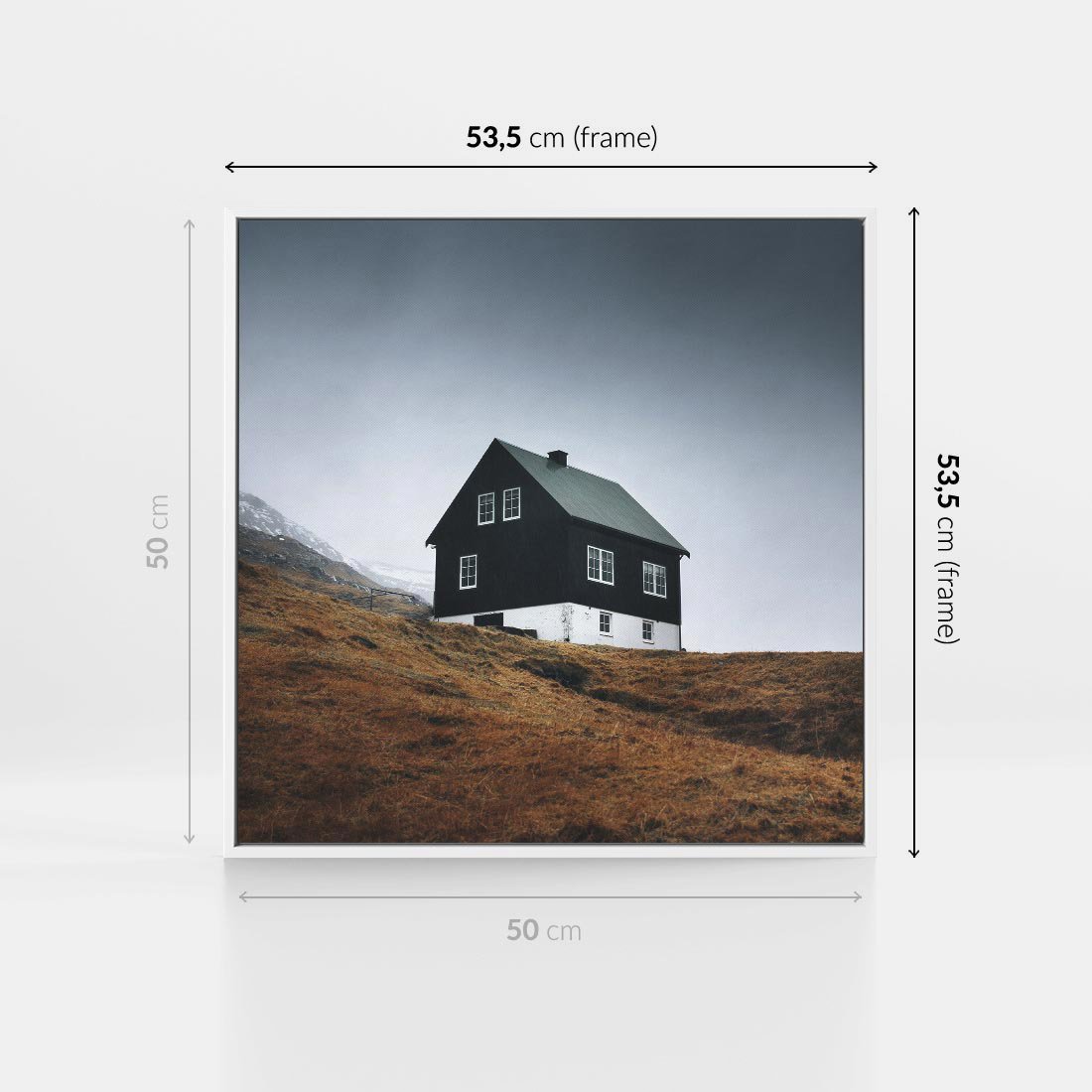 Obraz w ramie 50x50 - Ciepło i Przytulność - skandynawski, domek - rama biała