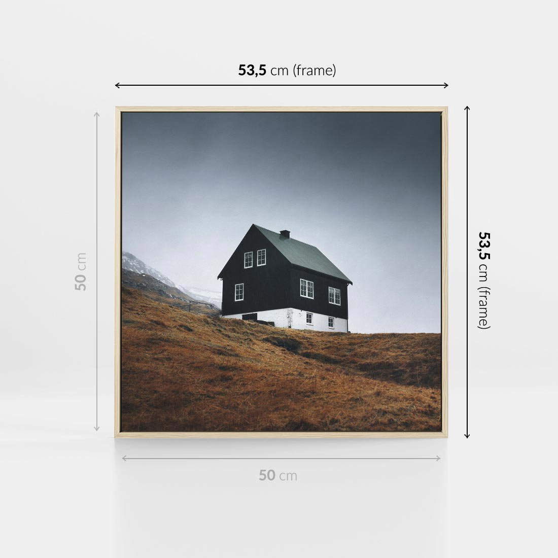 Obraz w ramie 50x50 - Ciepło i Przytulność - skandynawski, domek - rama drewno