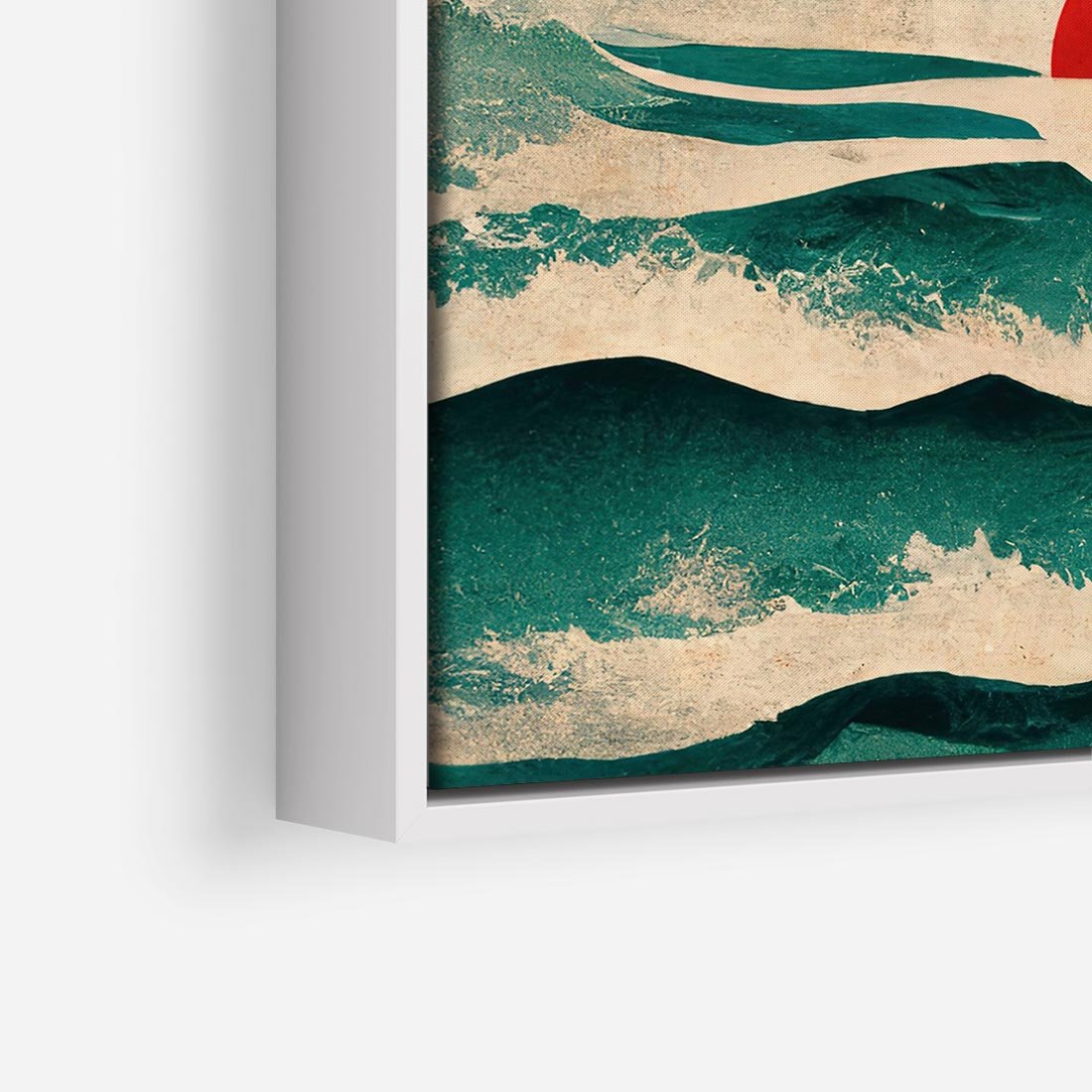 Japońska sztuka na płótnie, która przenosi nas w świat spokoju i harmonii. Widok zachodu słońca nad oceanem malowany na starym papirusie emanuje mistycznym urokiem. Styl japandi, charakteryzujący się minimalistycznym pięknem, doskonale współgra z dynamiką fal. Czerwone słońce nadaje obrazowi wyjątkowego nastroju, przenosząc nas w pejzaż dalekiej Japonii. To dzieło sztuki, które oczarowuje i zachwyca.