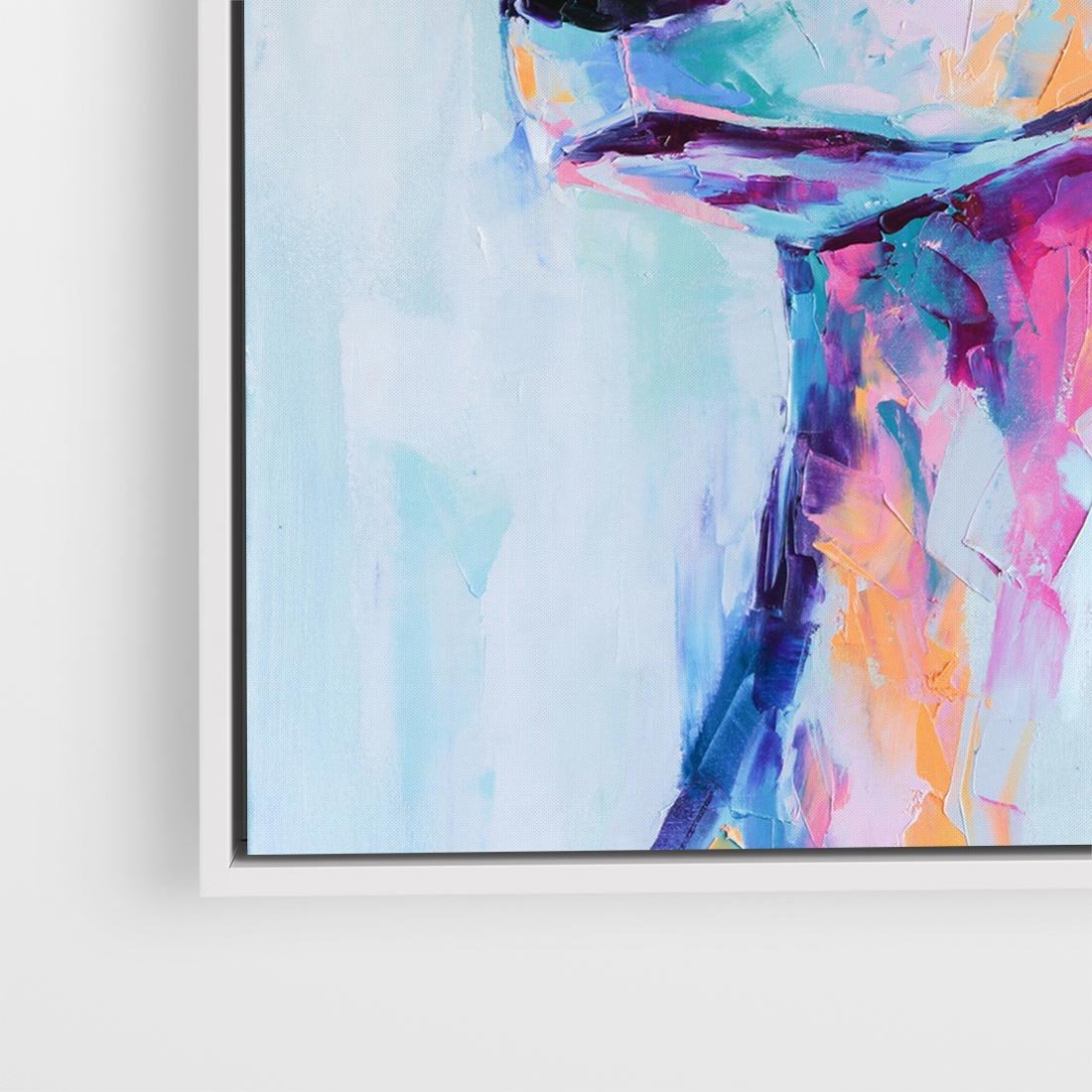 Ten olejny obraz to nie tylko portret psa, ale także zabawna i nowoczesna sztuka, która wykorzystuje pastelowe kolory, aby przekazać radość i humor. W centrum obrazu znajduje się portret uroczego psa. Pastelowe kolory nadają obrazowi lekkości i przyjemności. To dzieło sztuki doskonale pasuje do wnętrz, gdzie doceniane są zarówno nowoczesność, jak i poczucie humoru, a także jest znakomitą dekoracją dla miłośników psów.