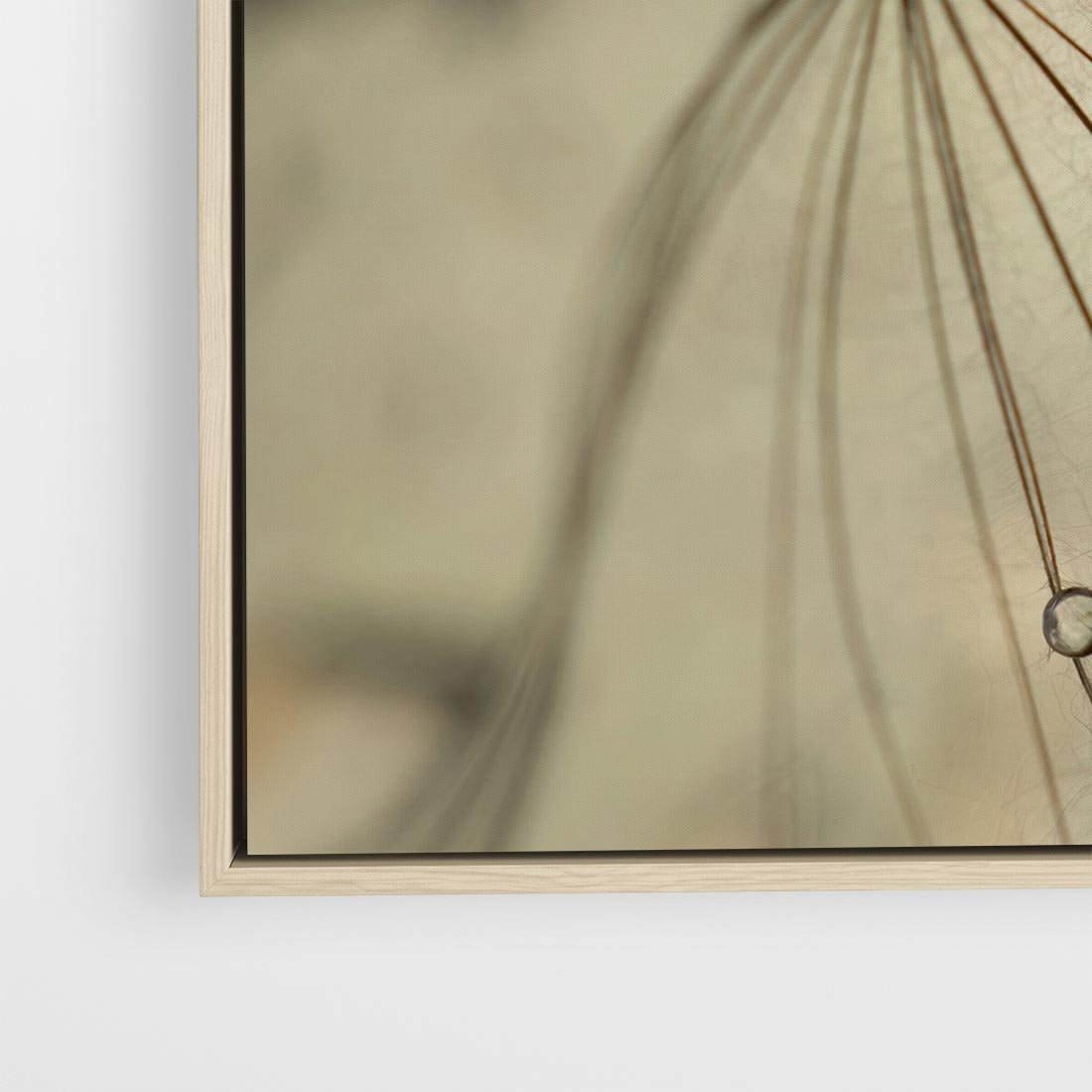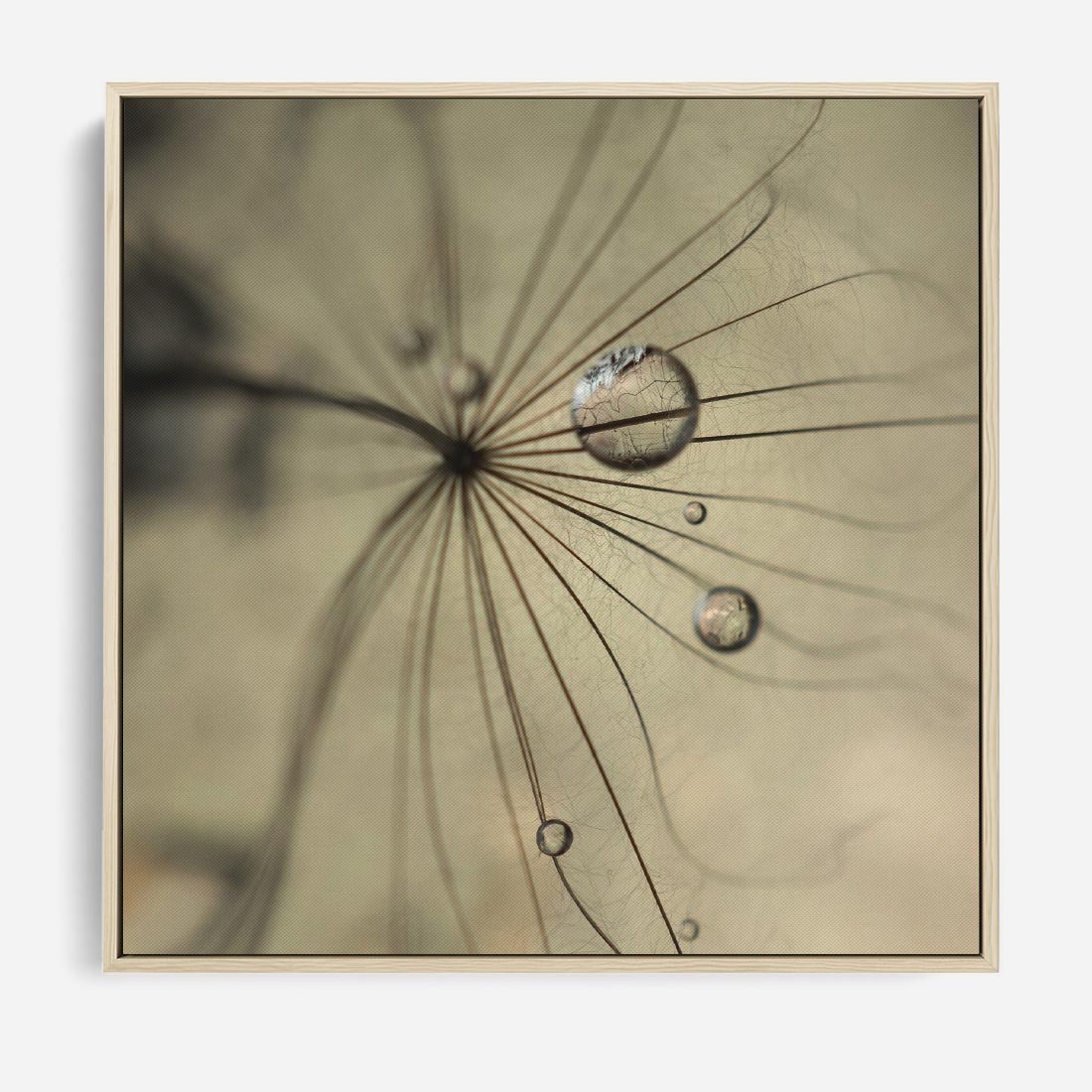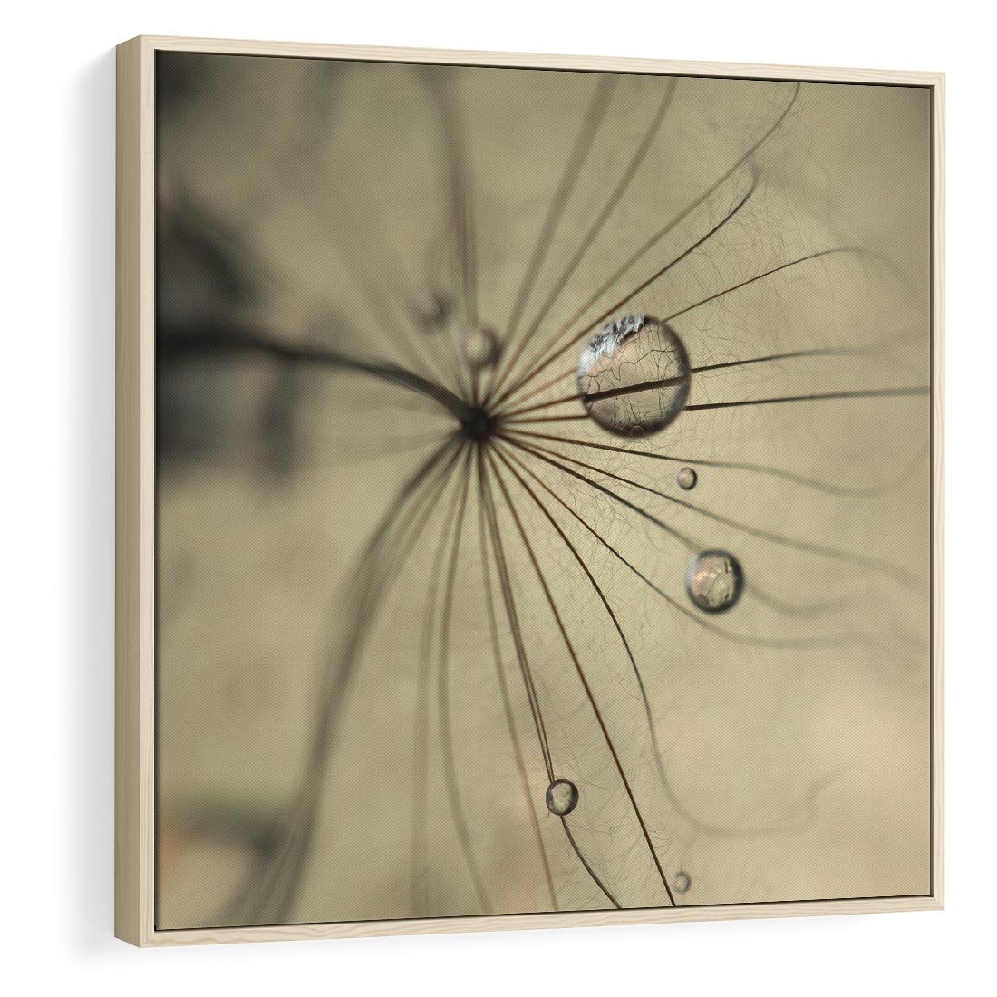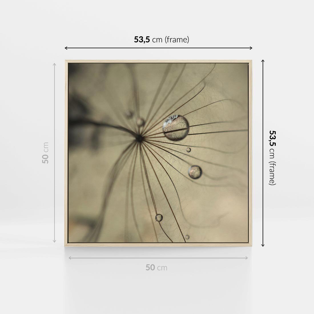 Obraz w ramie 50x50 - Delikatność dmuchawców - dmuchawce, krople - rama drewno