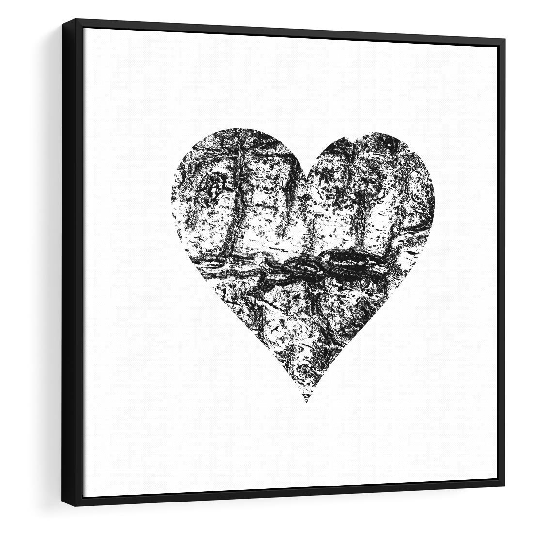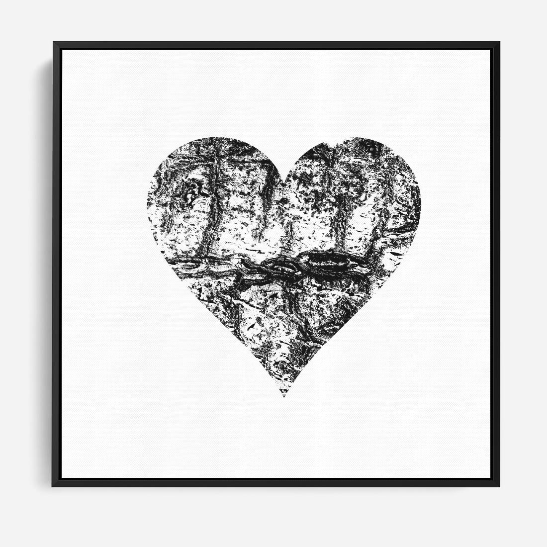 Obraz w ramie 50x50 - Drzewo Serca - czarne serce, tekstura jak kora drzewa - rama czarna
