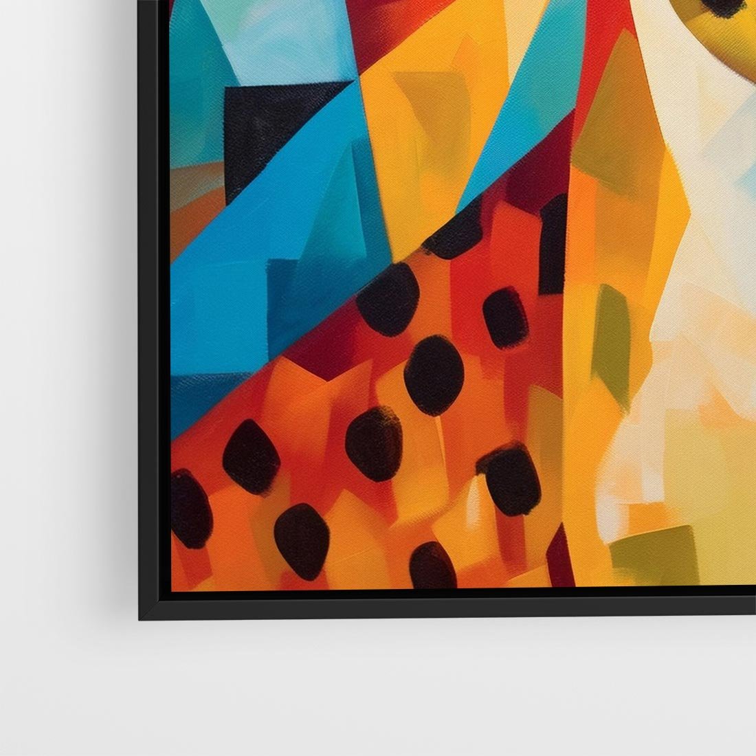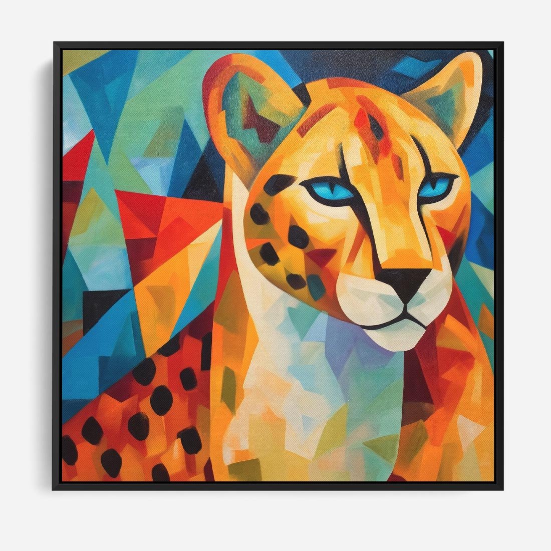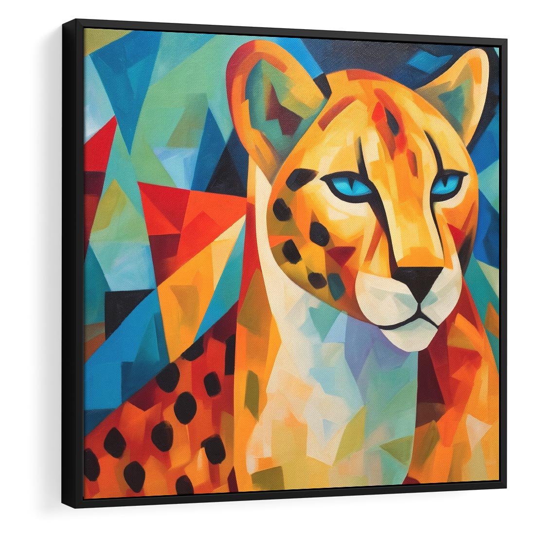 Obraz w ramie 50x50 - Dzikie Piękno - abstrakcyjny portret geparda, intensywne kolory - rama czarna