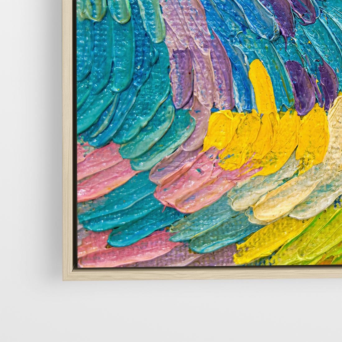 Obraz w ramie 50x50 - Egzotyczne Pióra - abstrakcyjne dzieło, farby olejne - rama drewno