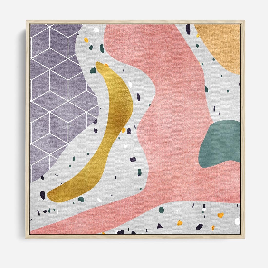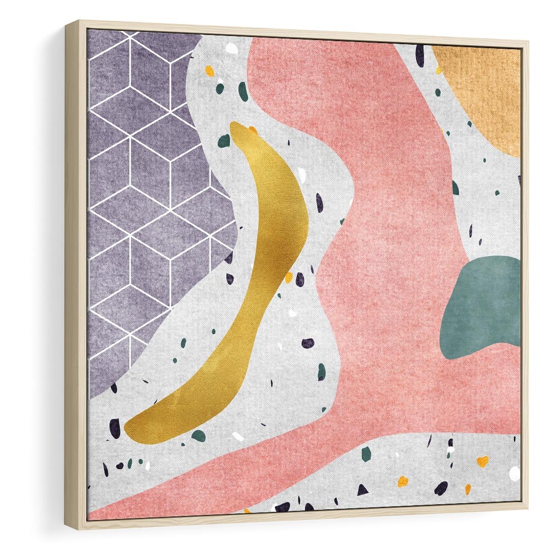 Obraz w ramie 50x50 - Eklektyczny Mix - kolaż, pastelowe abstrakcyjne plamy - rama drewno