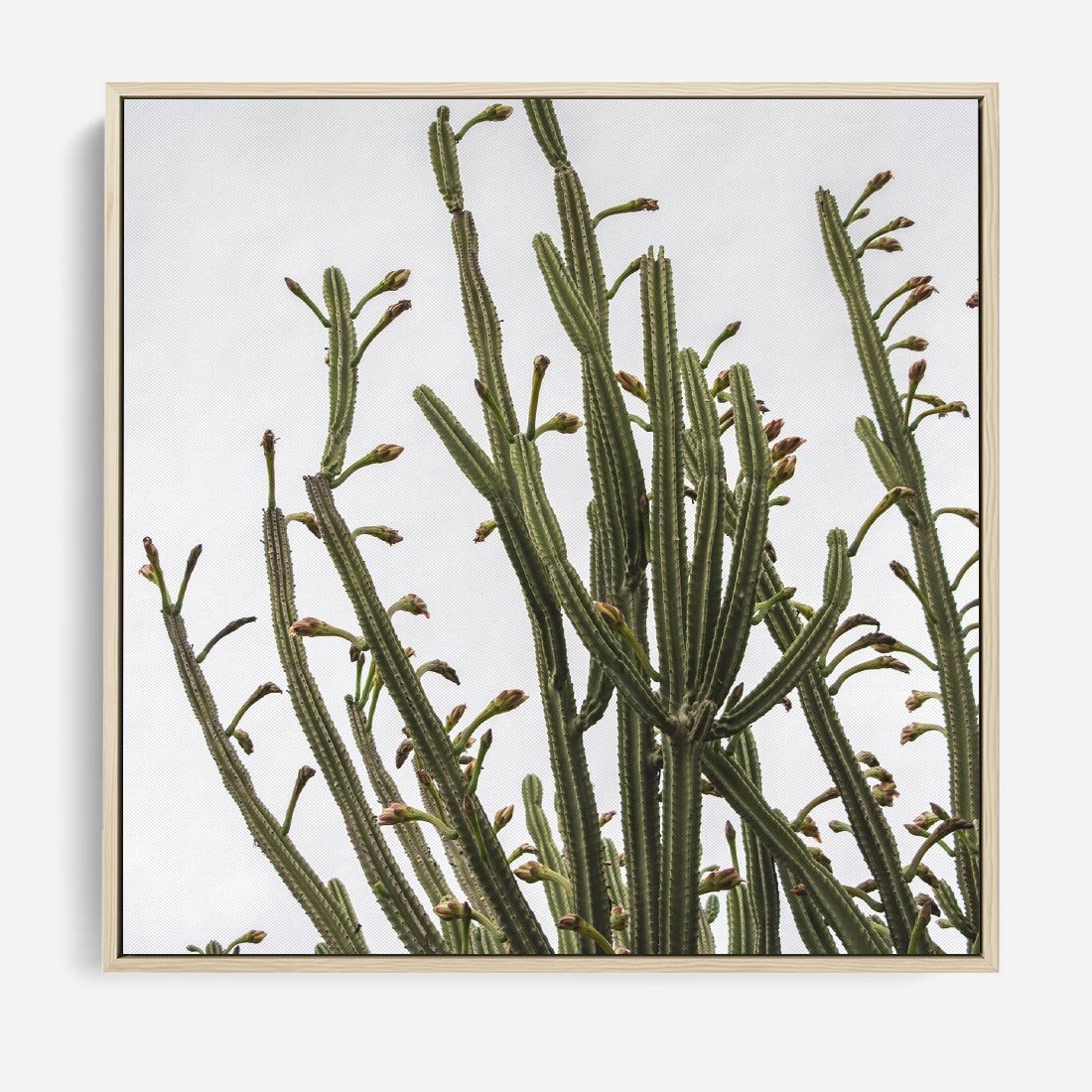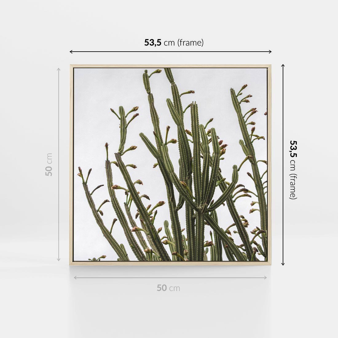 Obraz w ramie 50x50 - Ekskluzywna Roślinność - kaktusy, liście - rama drewno