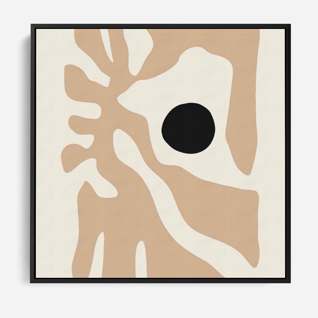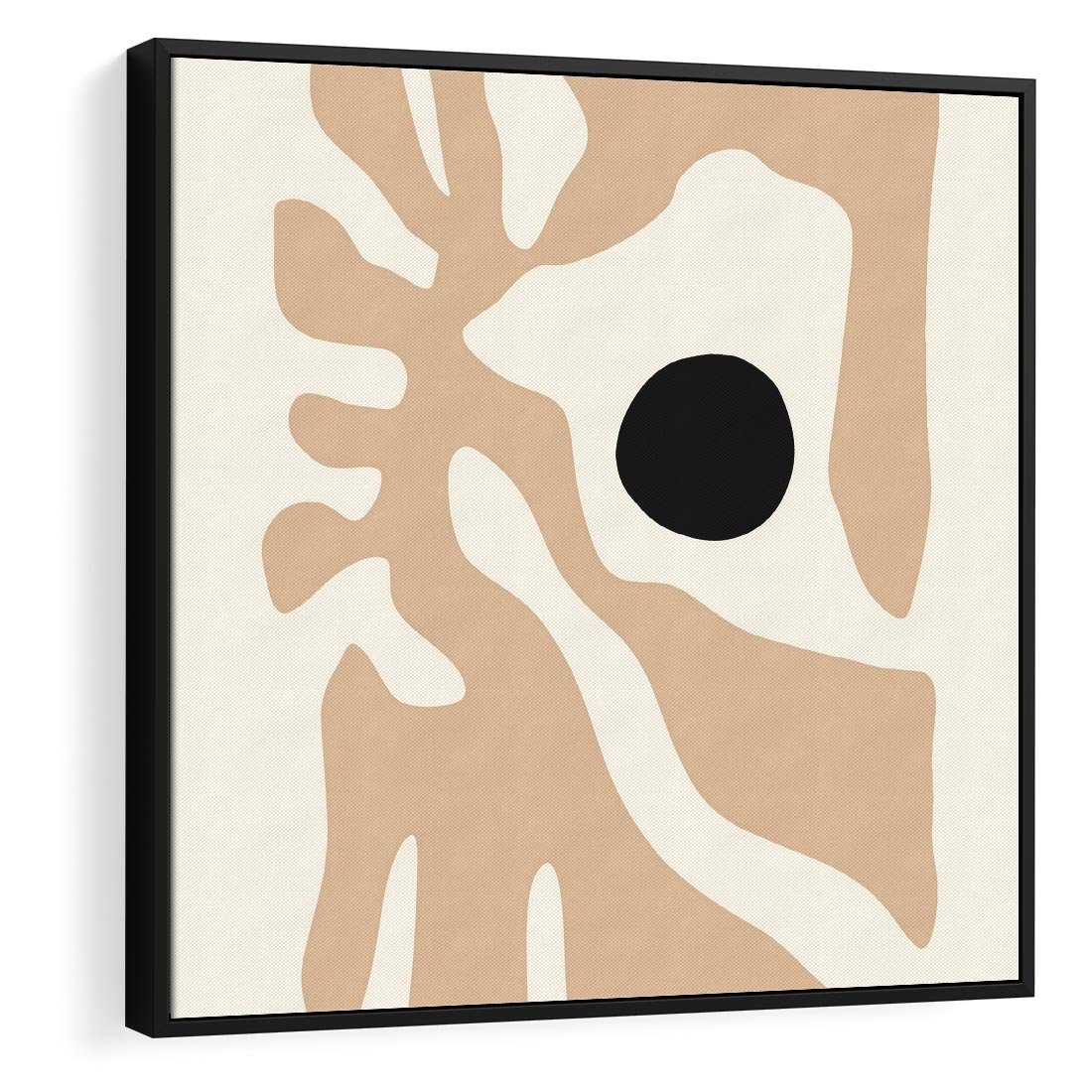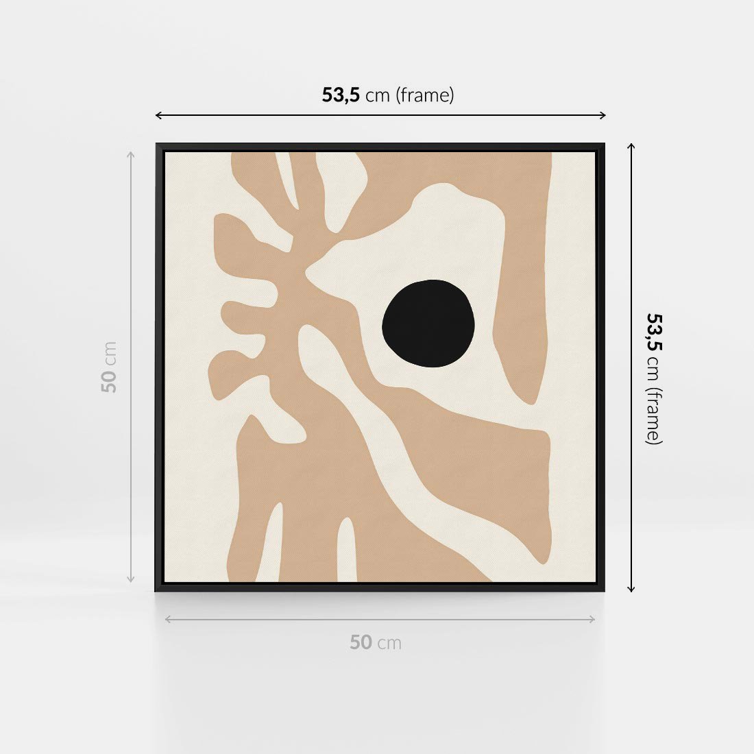 Obraz w ramie 50x50 - Eksploracja Abstrakcji - beżowa absrakcyjna kompozycja, czarny akcent - rama czarna