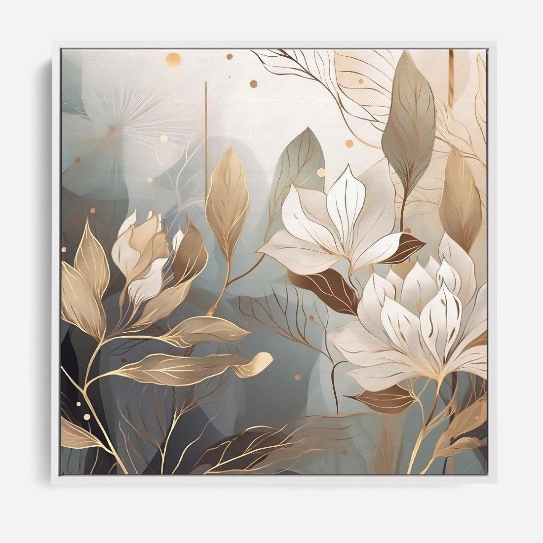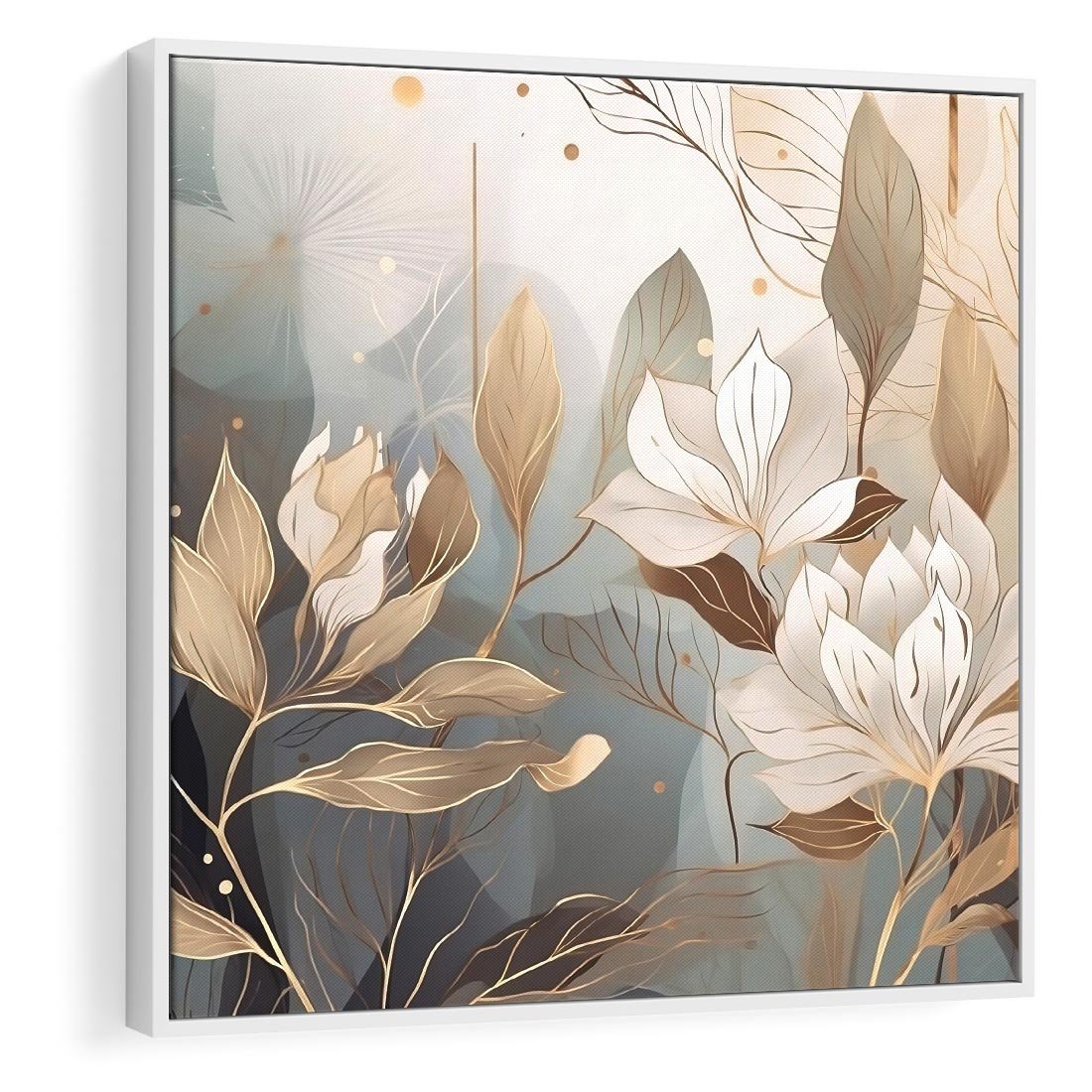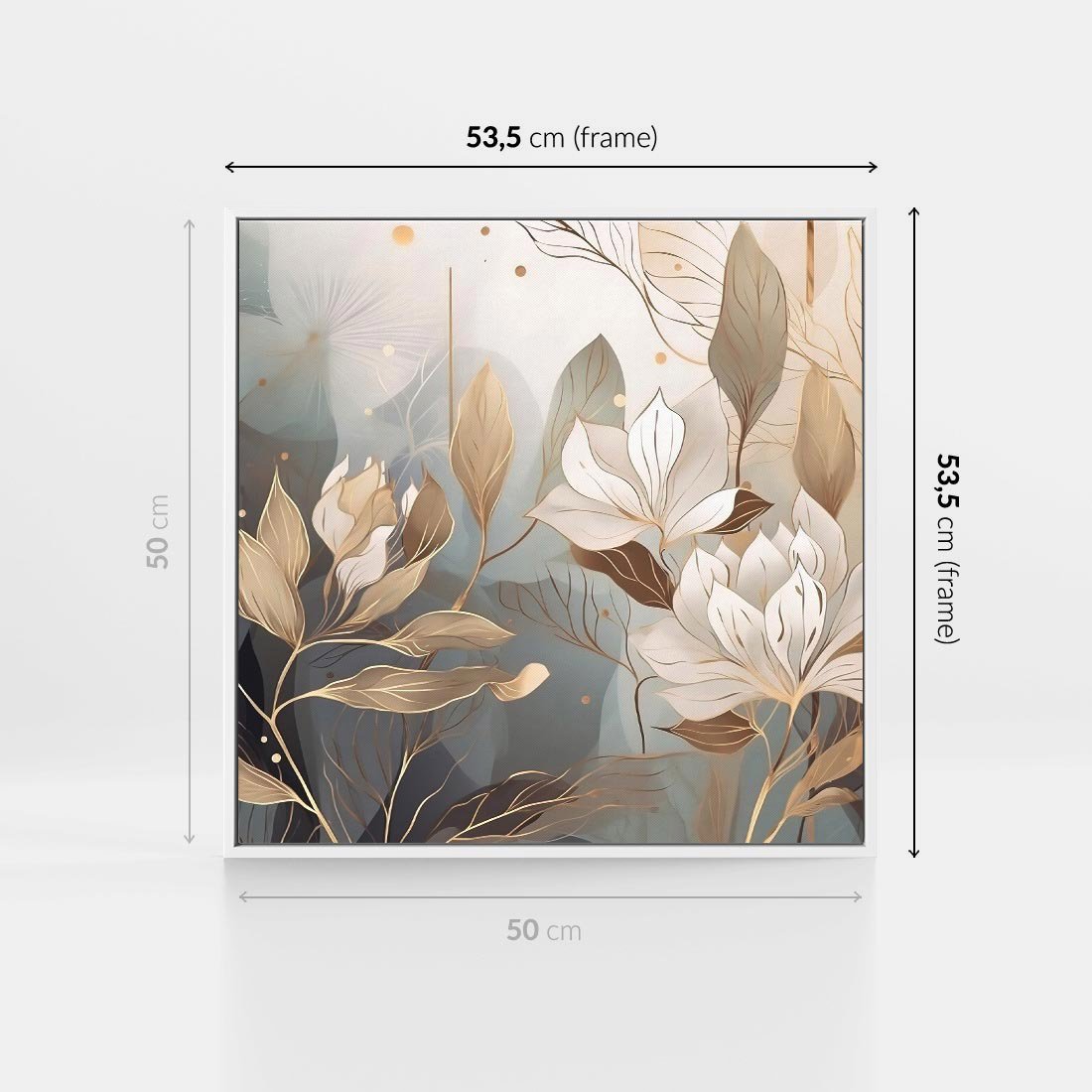 Ta nowoczesna grafika przedstawia złote kwiaty, które rozkwitają w blasku światła. Ich piękno i elegancja doskonale pasują do wnętrz glamour, dodając im wyjątkowego charakteru. To artystyczne dzieło sztuki wprowadza luksusowy akcent do Twojego wnętrza, zachwycając oryginalnością i złotym blaskiem.