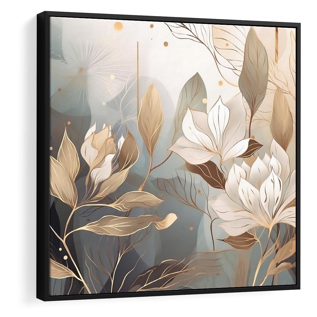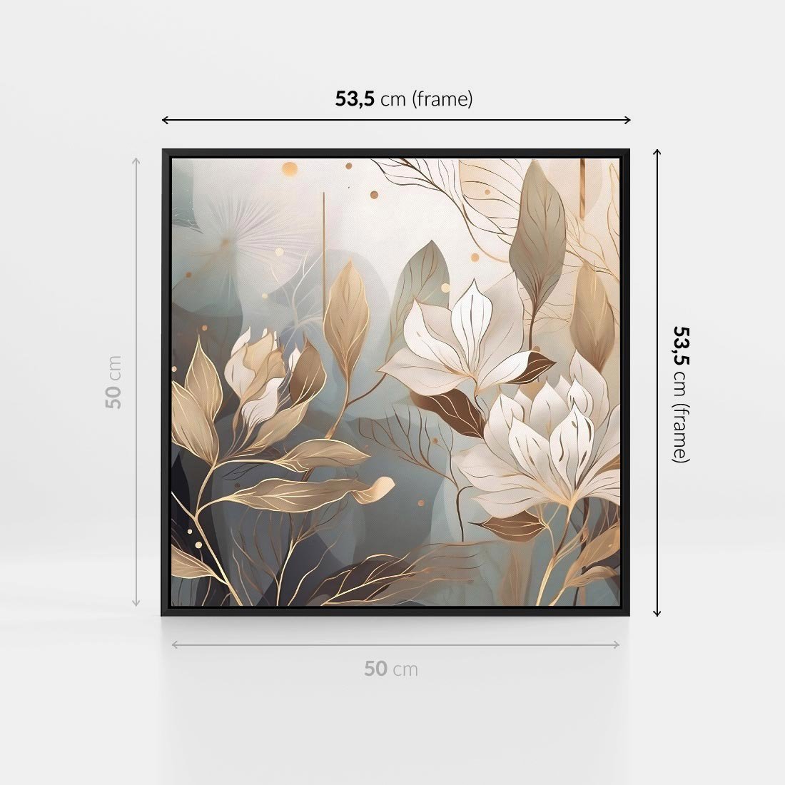 Ta nowoczesna grafika przedstawia złote kwiaty, które rozkwitają w blasku światła. Ich piękno i elegancja doskonale pasują do wnętrz glamour, dodając im wyjątkowego charakteru. To artystyczne dzieło sztuki wprowadza luksusowy akcent do Twojego wnętrza, zachwycając oryginalnością i złotym blaskiem.