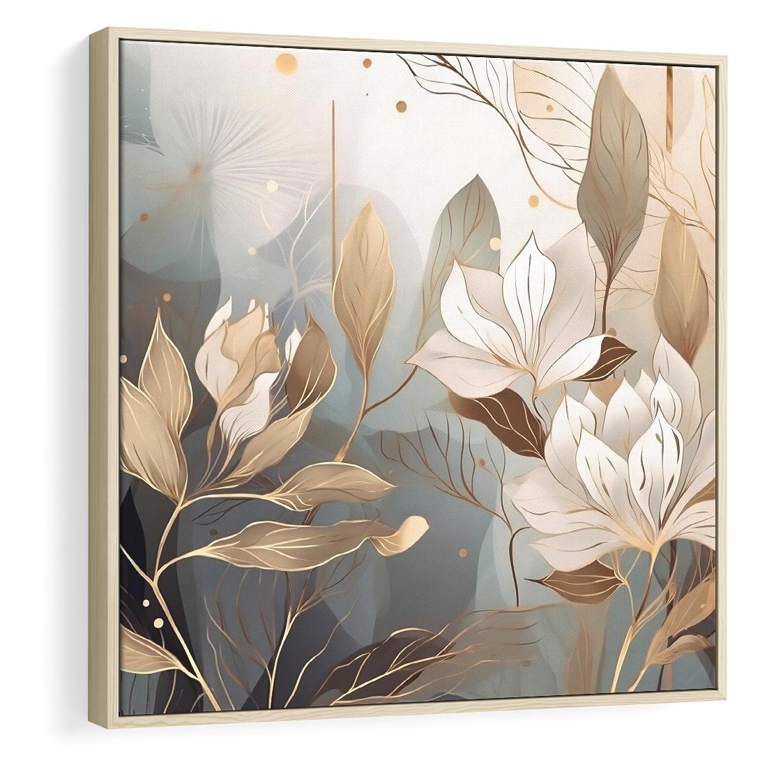 Ta nowoczesna grafika przedstawia złote kwiaty, które rozkwitają w blasku światła. Ich piękno i elegancja doskonale pasują do wnętrz glamour, dodając im wyjątkowego charakteru. To artystyczne dzieło sztuki wprowadza luksusowy akcent do Twojego wnętrza, zachwycając oryginalnością i złotym blaskiem.